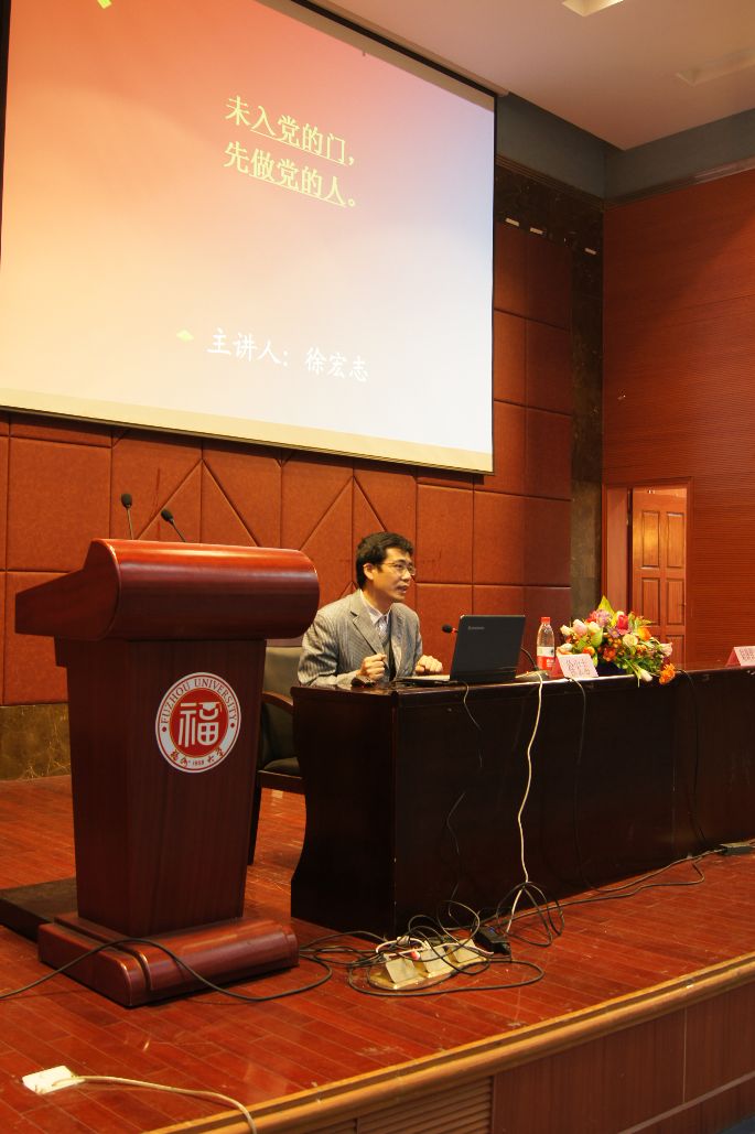 校党委组织部副部长徐宏志为我院积极分子做本次培训第三讲的讲授,《未入党的门,先做党的人》,阐述了一个很常见,但是很难做到的道理——身未入党,思想先入党,以党员的标准严格要求自己。徐老师的课很精彩,在整个上课的过程中,掌声不断,给同学们上了很好的一课。