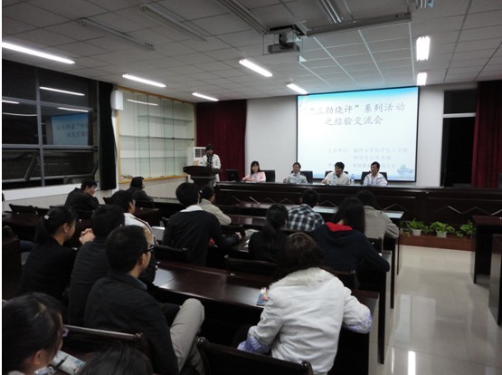 研究生会学术部主办的研究生经验交流会正式开始。应邀到场的嘉宾都是在其文章发表、研会工作以及校外工作中的佼佼者。他们分别是:王啸,张经伟,洪振生,丁娴。