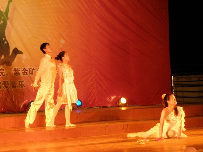在最后一篇章“献礼中华”中,伴着《伤信》婉约的钢琴曲,化学化工学院三名舞者表演的《天亮了》把我们带入了一个感人的故事中,我们的心情仿佛也被舞者舞姿扭动着,时而哀伤,时而喜悦,但是最后太阳升起来,天亮了,一切都充满了希望。随后08级两位歌手带来的歌曲《国家》,则带出了我们每个人的深藏的爱国情谊。