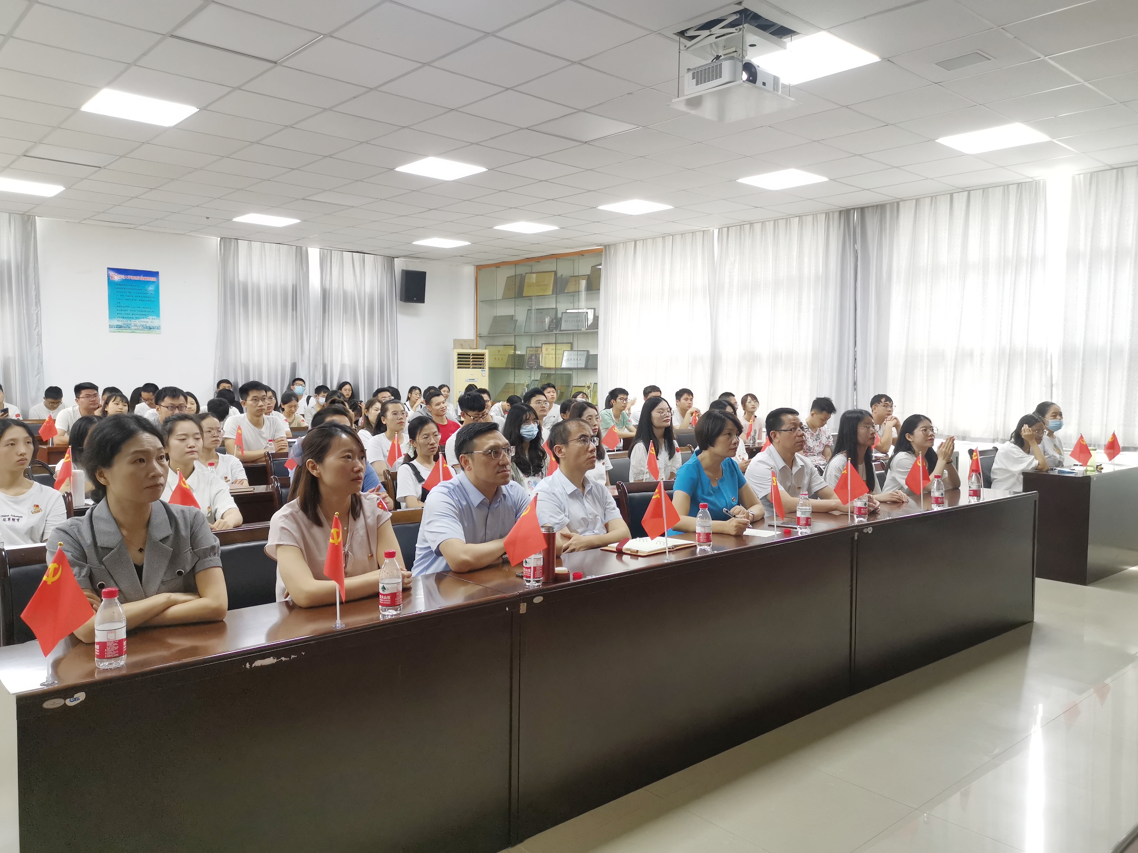 当天上午,院领导张泓、郑寿添、刘旺、唐点平、教职工代表、学生代表共80余人齐聚嘉锡楼413报告厅,集中收看中国共产党成立100周年庆祝活动直播,回顾来时奋斗路,鉴照未来新征程。
