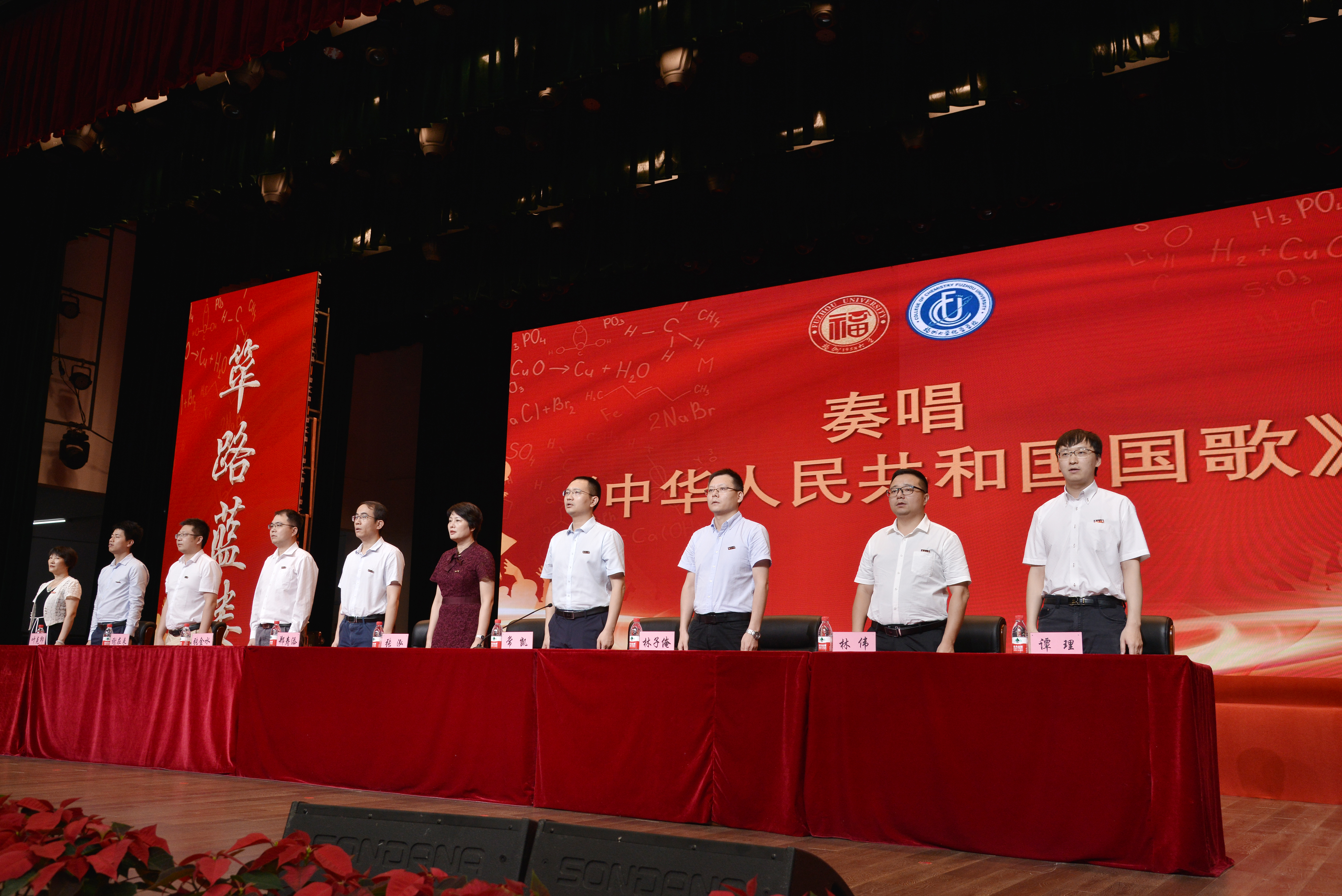在校学生代表叶烨向即将毕业的学长学姐表达诚挚的感谢和真挚的祝福,希望每一个福大人用一生去诠释“明德至诚,博学远志”的校训。