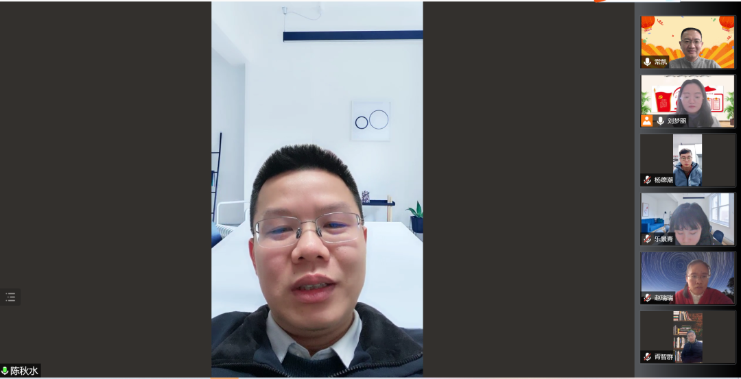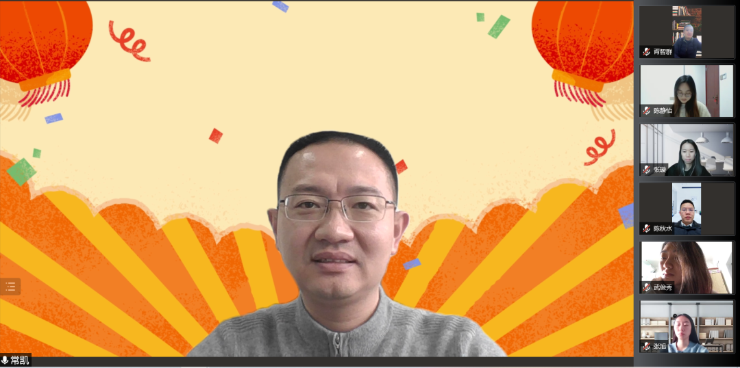 支部教师党员、院党委常凯副书记作点评发言,他对本次活动的形式、内容、过程都给予了充分肯定。他强调,党支部建设要与时俱进,不断探索优质、高效的新模式,实实在在地加强党建与业务的双融合双促进。创新创业党支部要以一流的党建引领一流的学习科研,他希望每位党员同志结合两位教师党员的经验分享,根据所在科研团队和自身的特点,无论是“从0到1”的基础理论探索,还是接地气的应用型研究,都要大力提升创新实践能力。他还对2022年支部工作计划提出了具体建议。最后,他祝愿支部全体党员及家人虎年吉祥,健康平安,万事如意!
