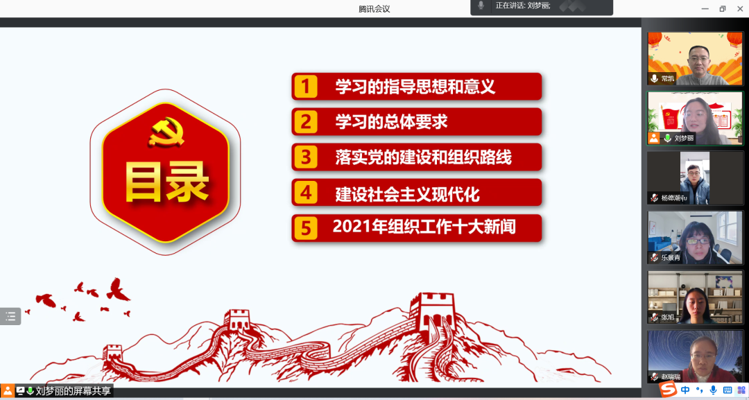 会议开始,支部书记刘梦丽同志以《以党建业务高质量融合助推创新创业——践行时代担当责任》为主题,结合党的指导思想,梳理学习总体要求,抓严抓实“党员活动日”,认真执行“三会一课”制度,规范党内组织生活。她以时间轴为线索,总结了2021年度党支部开展各项工作的情况,并与大家分享了“共产党员”公众号推出的“2021年组织工作十大新闻”