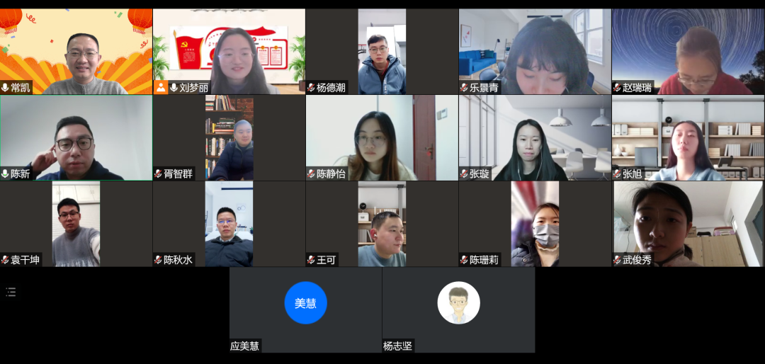 创新创业党支部通过腾讯会议开展“疫情防控不松懈 创新创业勇担当”主题党日活动。支部教师党员常凯、陈秋水、陈新及支部全体学生党员共同在云端参会。