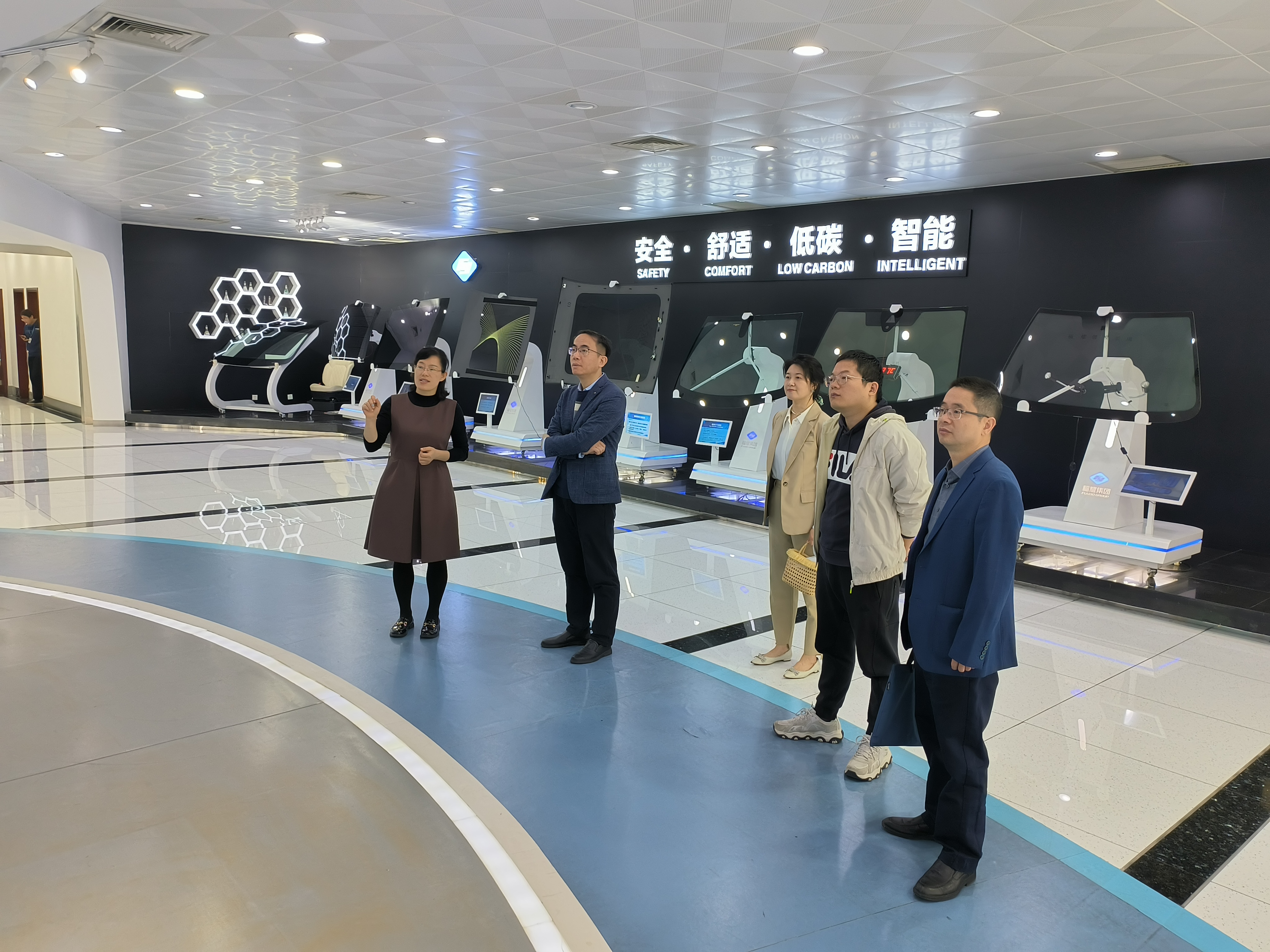院长郑寿添一行首参观了福耀集团研究院展厅及部分实验室,深入了解企业发展历程、业务领域、技术成果以及社会责任等情况。