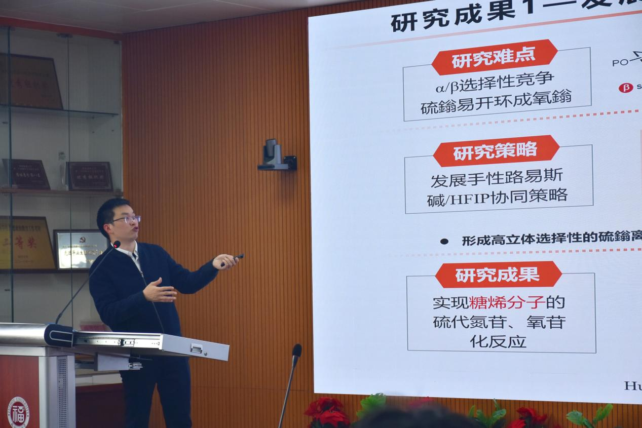 陈志敏学长从“S”化学出发,深入浅出地向老师同学们汇报自己的研究成果。关于为什么以“’S’化学”为题,陈志敏学长说道,这不仅是他的研究方向,更是他的成长信条。“我在研究‘S(硫)’化学的过程中,不断发现问题挑战,迎难而上,最终给出解决策略”,他对自己研究道路无比清晰的定位引起了在场同学们的强烈共鸣与深度思考。