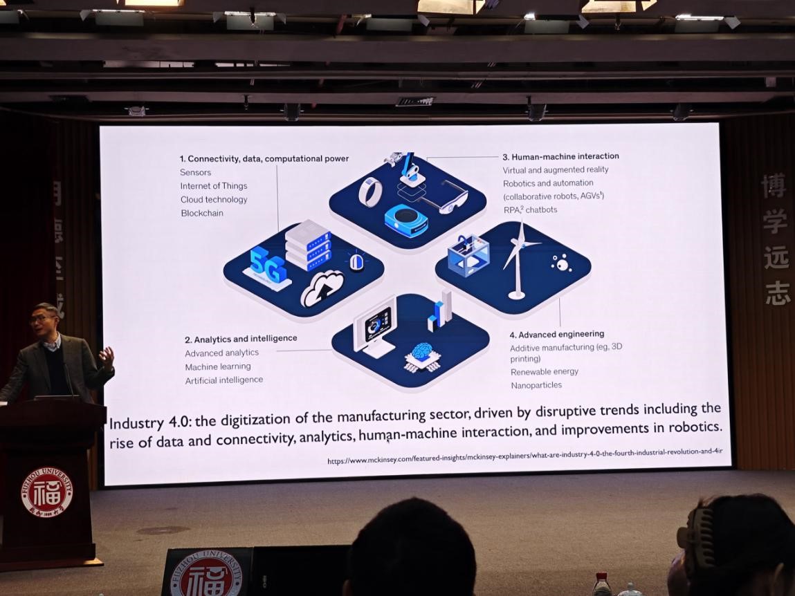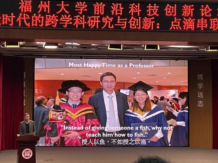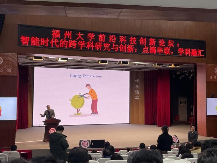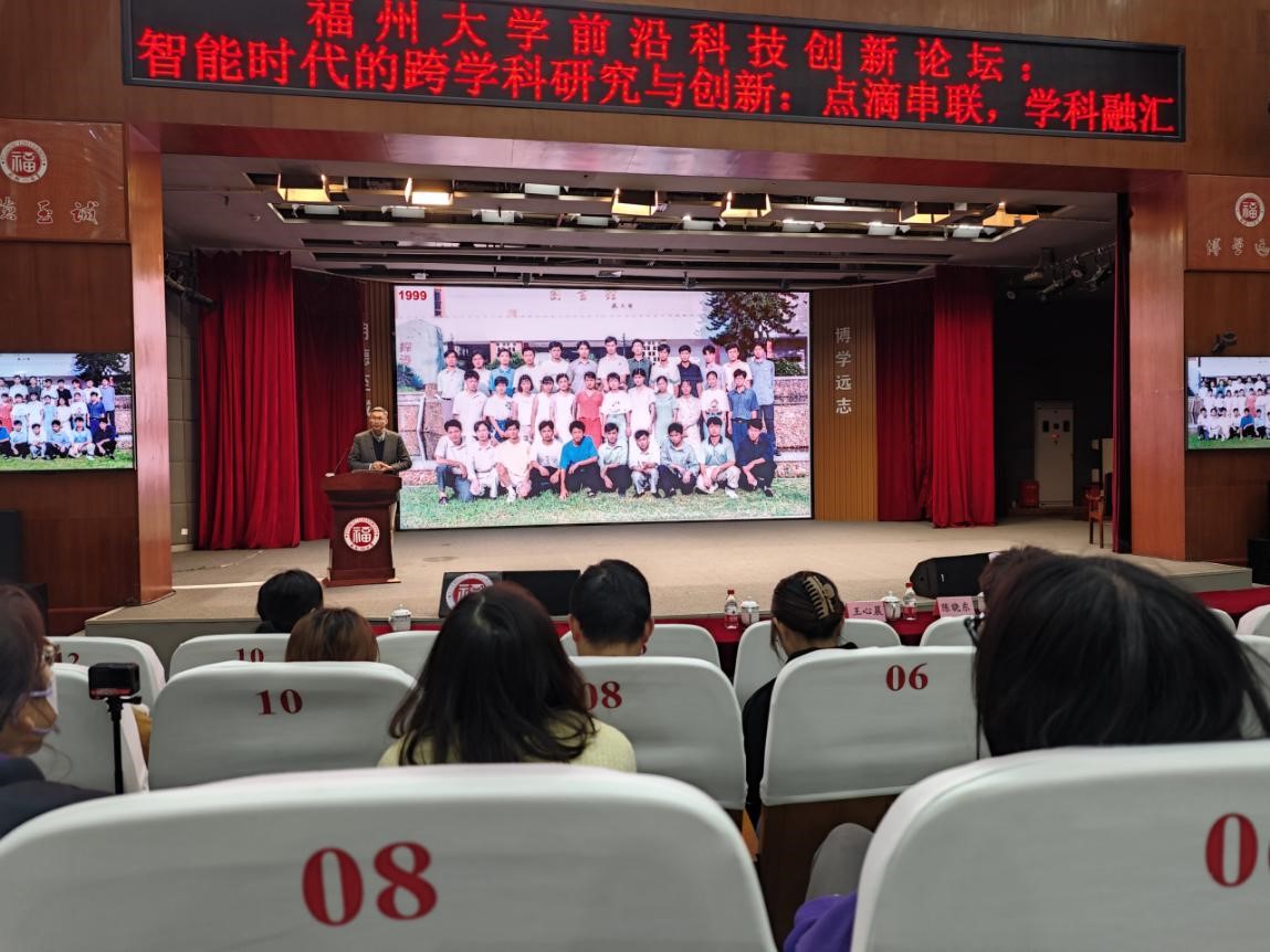 前沿科技创新论坛讲座在旗山校区图书馆博学厅举行,新加坡南洋理工大学材料科学与工程校长讲席教授、ACS nano主编、新加坡国家科学院院士、新加坡工程院院士、95级化学基地班校友陈晓东应邀作了题为“智能时代的跨学科研究与创新:点滴串联,学科融汇”的精彩报告。