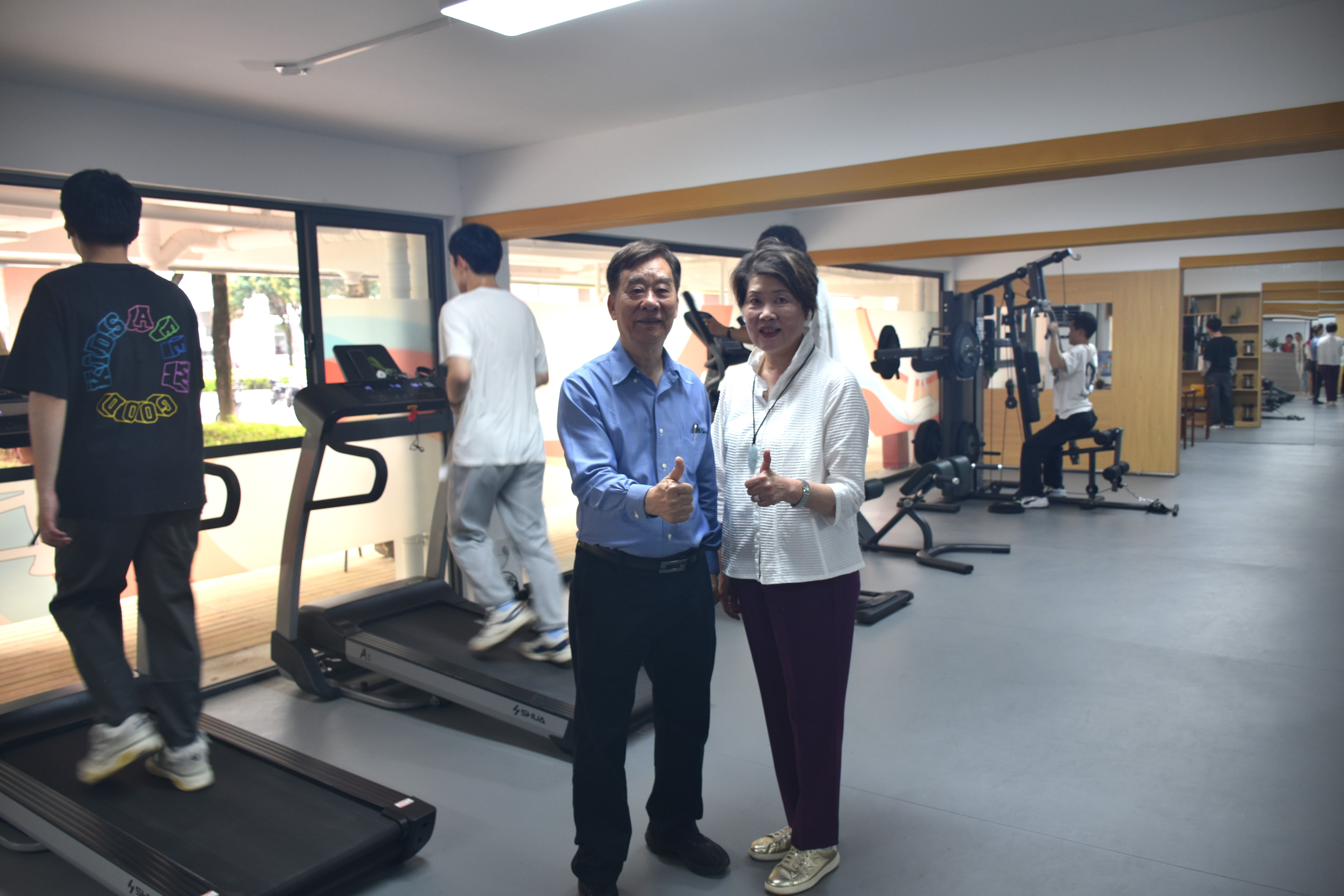 随后,杨鸿耀先生及其夫人杨赛芳女士共同参观了室外休闲共享空间、水吧台、器械室和瑜伽室等场所。