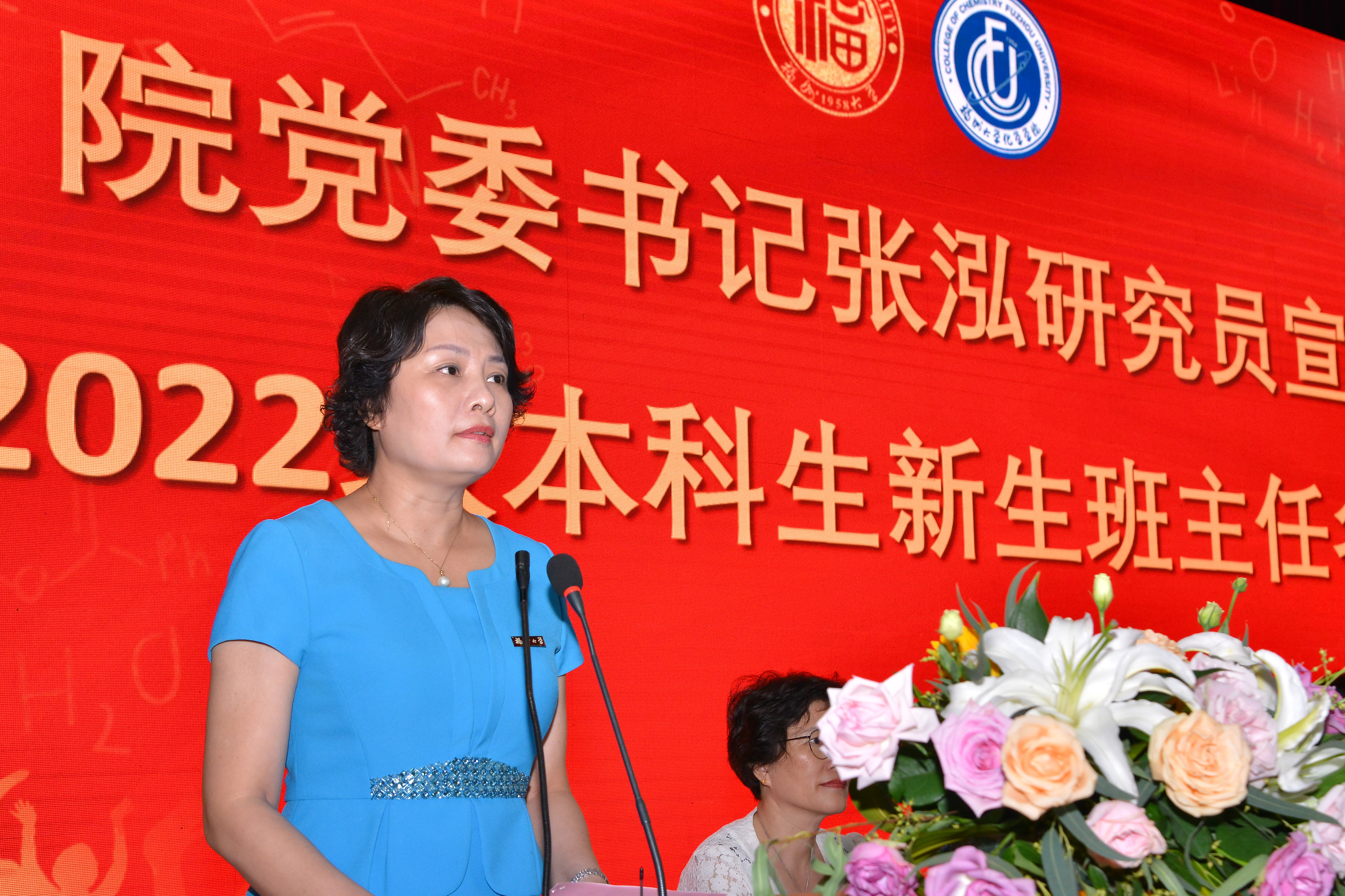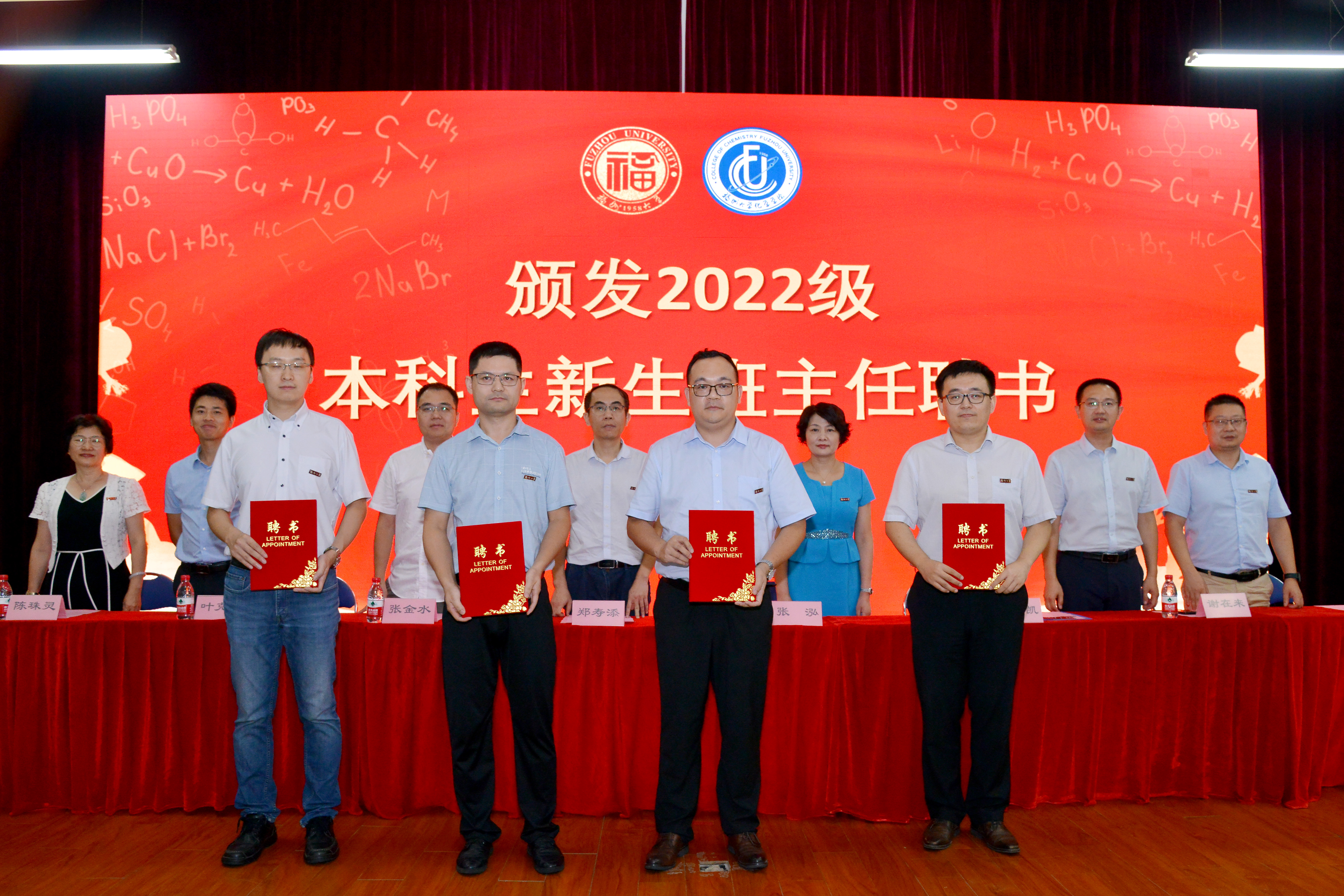 学院党委书记张泓研究员宣读了2022级本科新生班主任名单:嘉锡化学拔尖班班主任 谭理副教授,化学一班班主任 汪思波教授,化学二班班主任 柏松延教授,制药工程班班主任 李金宇教授。