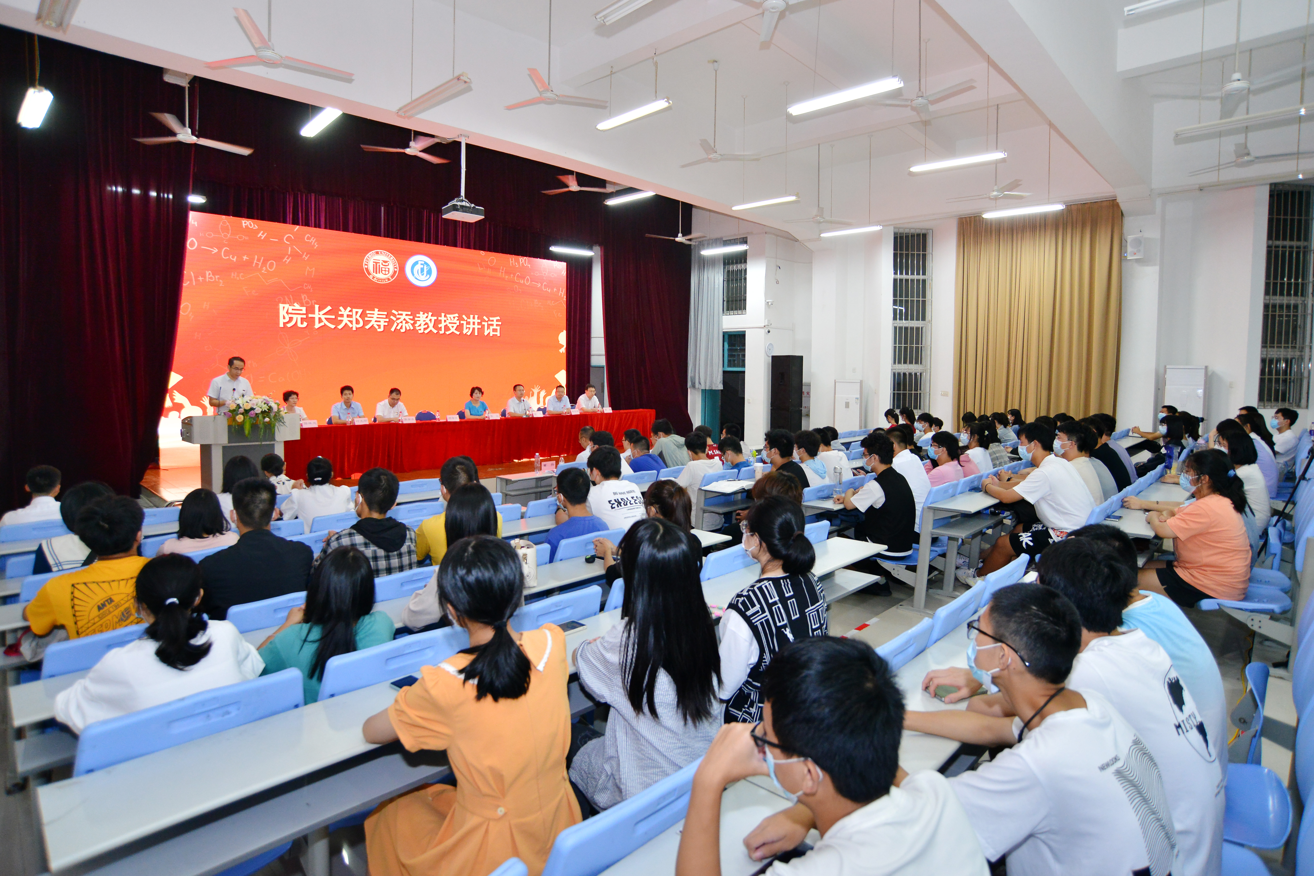 教育部“长江学者”特聘教授郑寿添院长讲话。他首先对2022级全体新生表示诚挚的问候和热烈的欢迎,并对学院“双一流”建设、人才强院战略、创新强院工程等方面进行了介绍,使新生对学院有更进一步的了解。