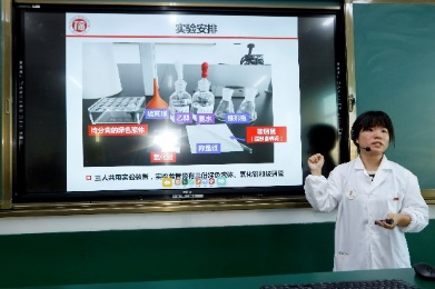 郑琤博士为高一高二对化学感兴趣的同学带来了“颜色魔术师”化学科普实验。同学们在自己亲手搭建的实验装置中,体验装柱、装样、洗脱等色谱分离流程,细心地探究如何更快更好地实现有色混合物的分离。将艺术融入化学,用实验解锁化学知识。同学们充分感受到化学实验的魅力,增强了自身对化学的兴趣。最后学生代表分享了此次科普实验的体会,能够亲身体验大学科普实验他们表示满心欢喜,收获良多。