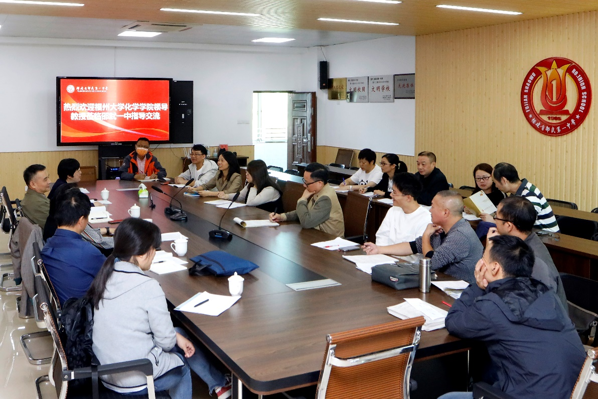 第二天,ChemFu科普志愿服务队的魏巧华教授、陈建中教授、李奕副教授、赵斌副教授、郑琤博士和邵武一中、四中和七中的化学老师们就高中化学日常教学、集体备课活动、中学生奥林匹克化学竞赛培训等方面展开交流和研讨。针对老师们在高中化学教学中遇到的疑惑,从学科思维的角度进行指导和解惑。老师们积极发言,场面热烈,气氛融洽。老师们纷纷表示与高校一线教师面对面交流可以了解到大学教学理念,对今后教学有较大帮助,受益匪浅。