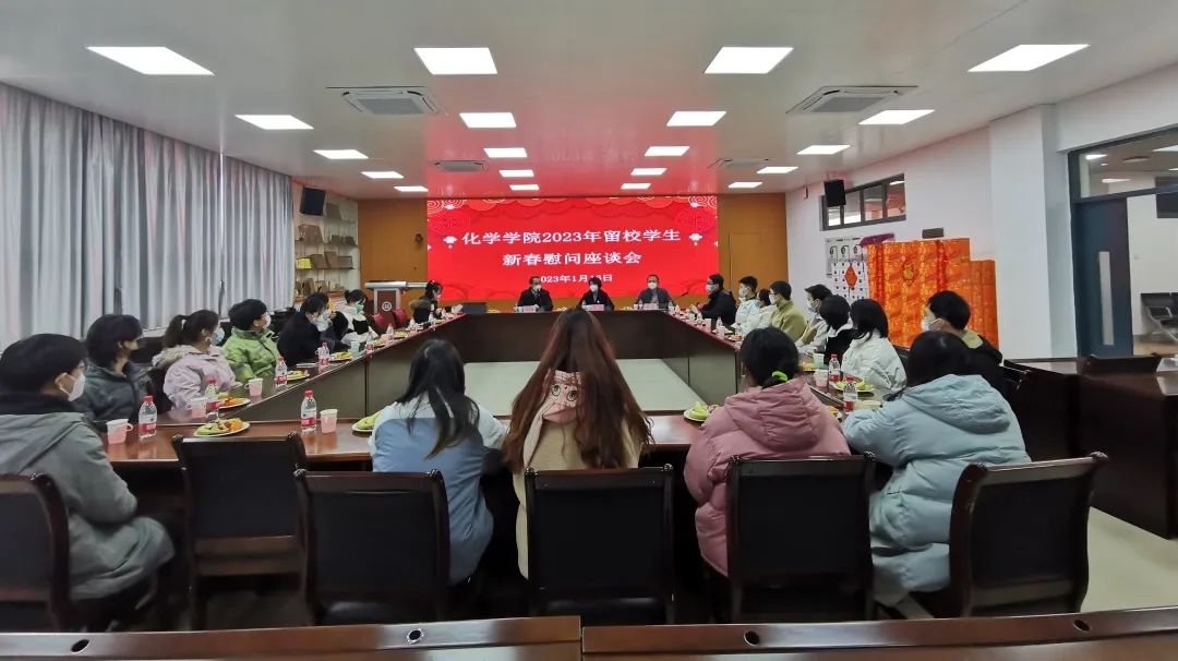 在与留校学生代表座谈会上,院领导仔细了解同学们的健康状况,共话寒假规划,送上新春问候。通过交流了解了同学们的留校安排和需求,对留校学生在科研进展和生活学习中所遇到的问题一一给予了解答。郑寿添院长嘱咐同学们在新年伊始,要健康作息、注意留校期间实验室安全问题、多与家人、同学沟通联系,保持乐观享受、积极进取的心态,以饱满的热情投入到学习生活中去,如遇到困难时要积极与辅导员、导师联系和反映,学校、学院将全力为同学们排忧解难。