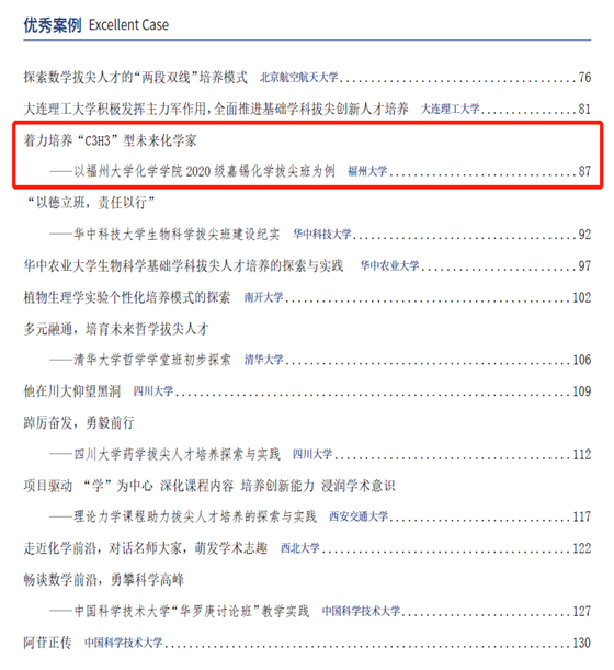 2020级嘉锡化学拔尖班为例》入选《拔尖通讯》第十期“优秀案例”,是入选单位中仅有的2所地方高校之一。