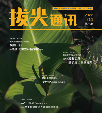 为贯彻全国教育大会精神,落实新时代全国高校本科教育工作会议精神,深入实施基础学科拔尖学生培养计划2.0(以下简称拔尖计划2.0),加强计划实施高校的工作交流,推动高校基础学科拔尖人才培养工作经验分享、方法创新和知识创造,教育部高等教育司定期编制和发布拔尖计划2.0内刊《拔尖通讯》。