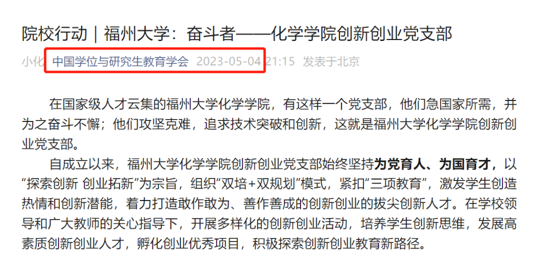 (创新创业党支部获中国学位与研究生教育学会宣传报道)