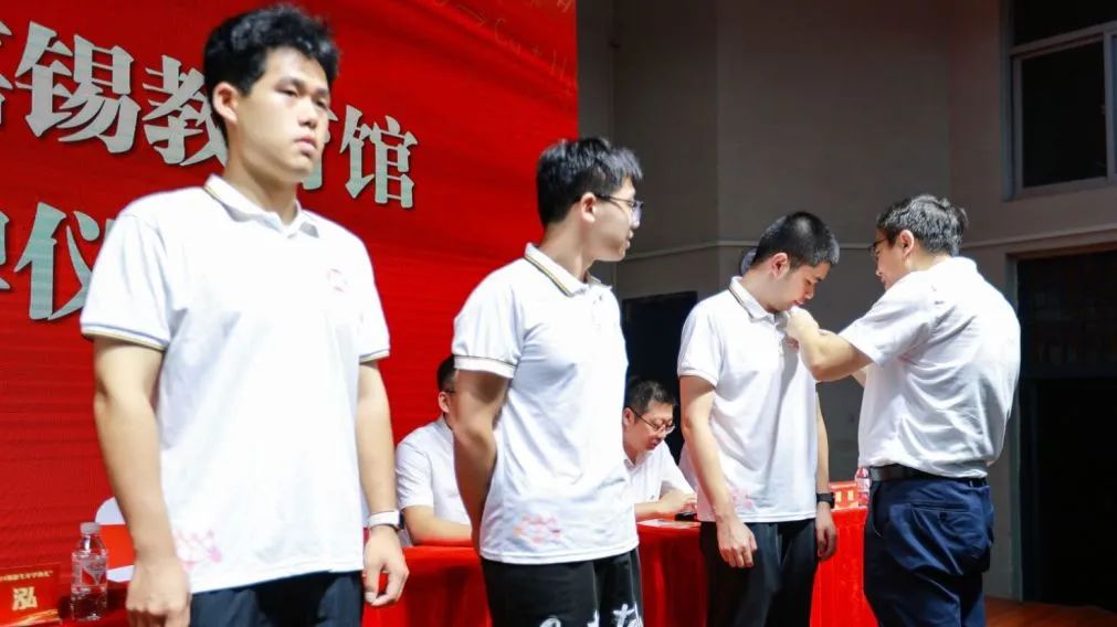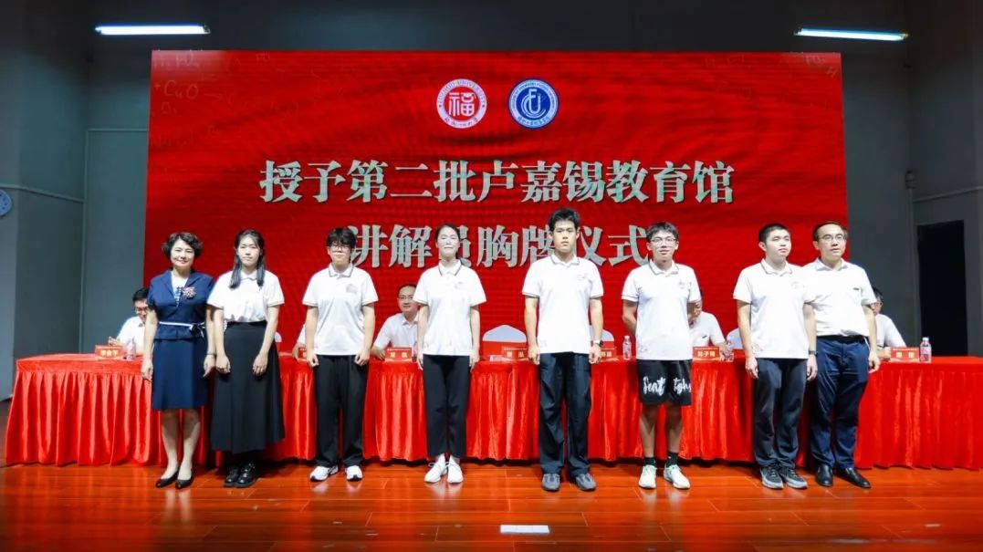 学院党委书记张泓研究员和院长郑寿添教授为卢嘉锡教育馆第二批讲解员代表佩戴胸牌。色色动漫