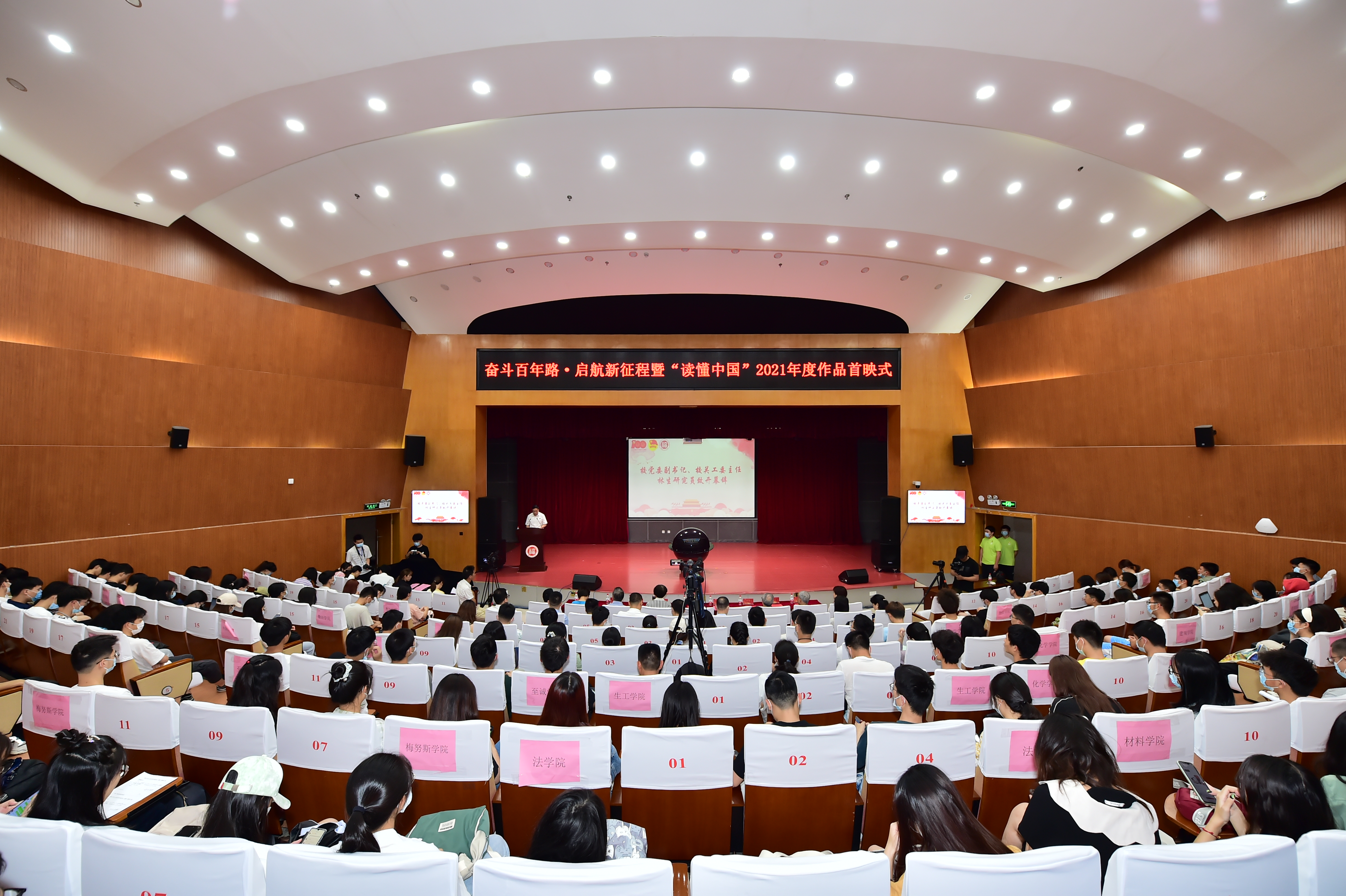 党委书记张泓、副书记刘旺,老教师雷德森、王绪绪、徐拱璧以及各学院师生代表约300人到场观映。首映式由校关工委常务副主任陈少平主持。