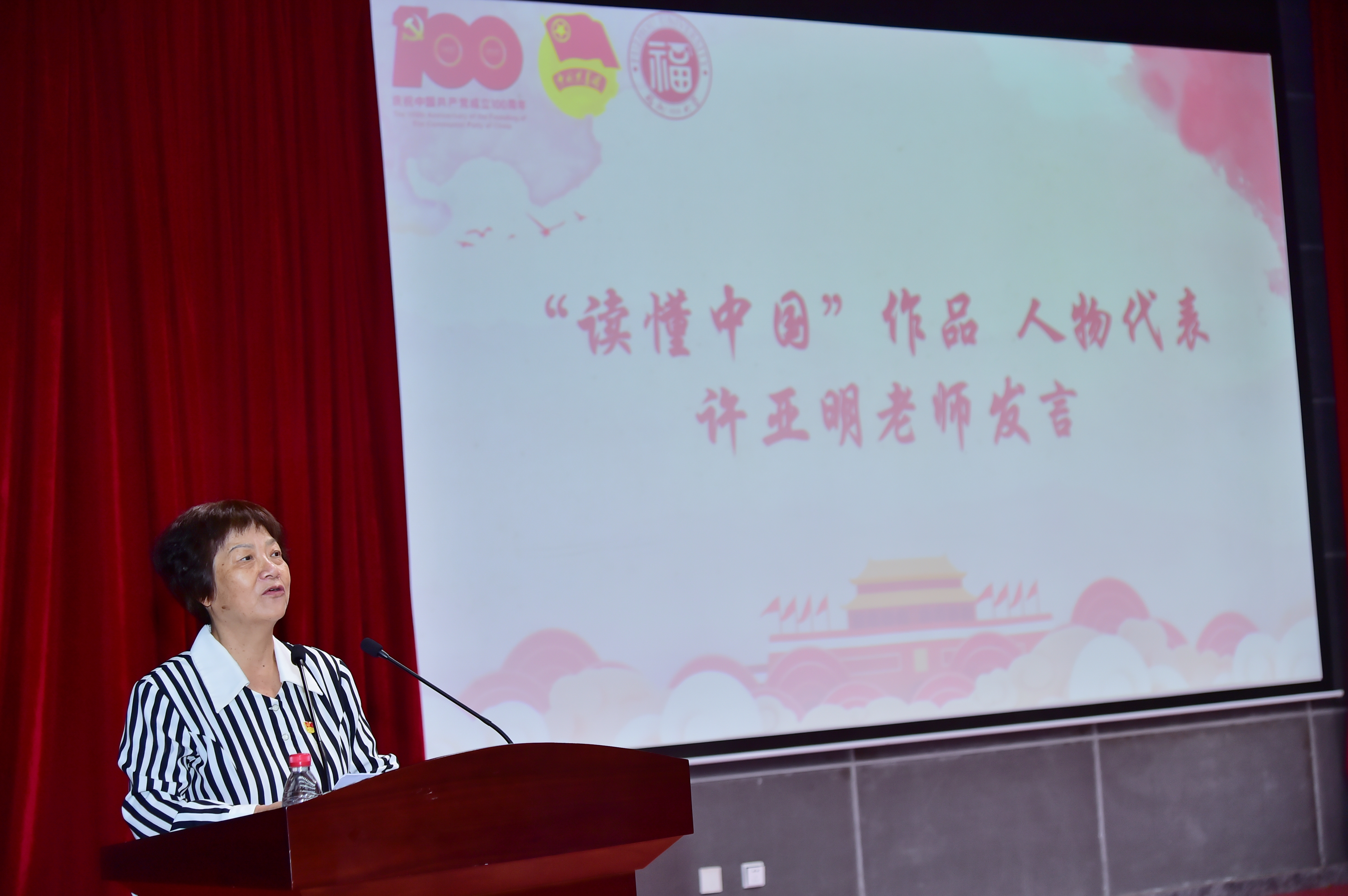 现场还邀请了“读懂中国”作品中主人翁代表许亚明老师与在场的师生进行分享。许老师通过介绍自己工作经历,表达了自己的人生目标:要全心全意为人民服务,要做到组织上入党一生一次,思想上入党一生一世。让青年学生,在“读懂中国”活动中读出本领,读出担当,成为德智体美劳全面发展的新青年。
