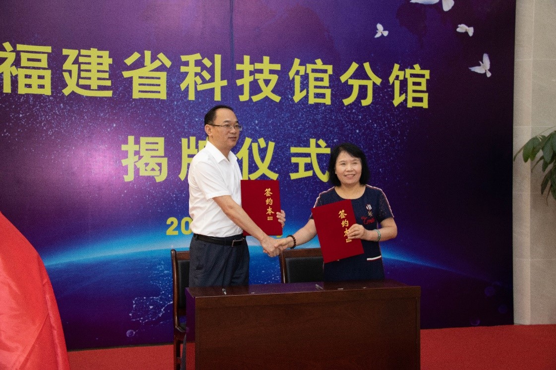 党委书记石炳文分别代表双方签署了《福建省“科学教育联盟”合作协议书》。随后,王美玲馆长和郭太良处长为分馆共同揭牌。揭牌仪式标志着色色动漫