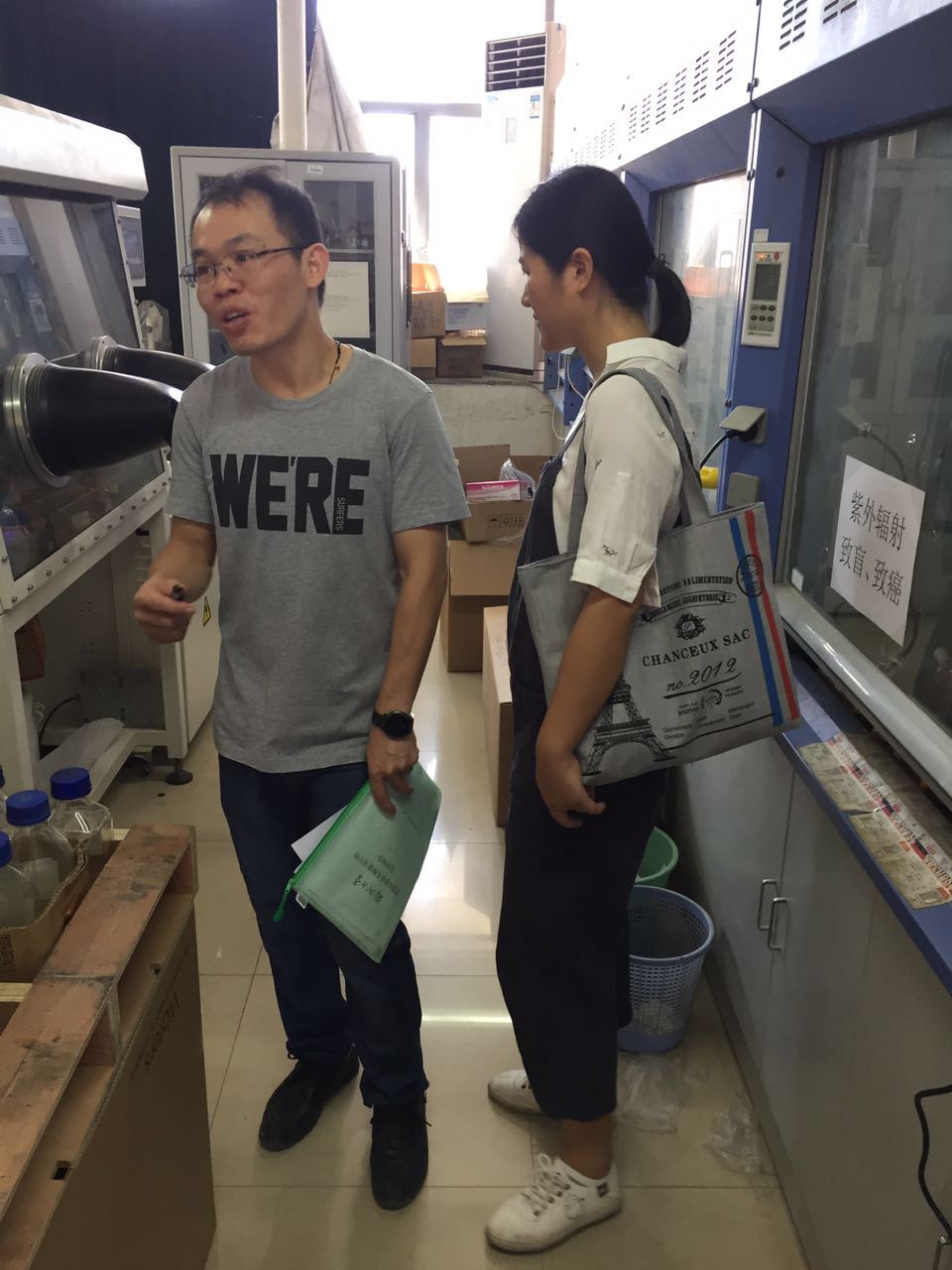 检查组通过实地查看、现场询问,对每间实验室的规章制度、实验设备、用电用水、危化品、安全隐患详细检查,尤其对涉及高温高速、易燃易爆、大功率设备、化学药品、废水处理等安全高风险的实验室进行了重点检查。并与实验室负责老师和学生沟通,做出详细的记录。