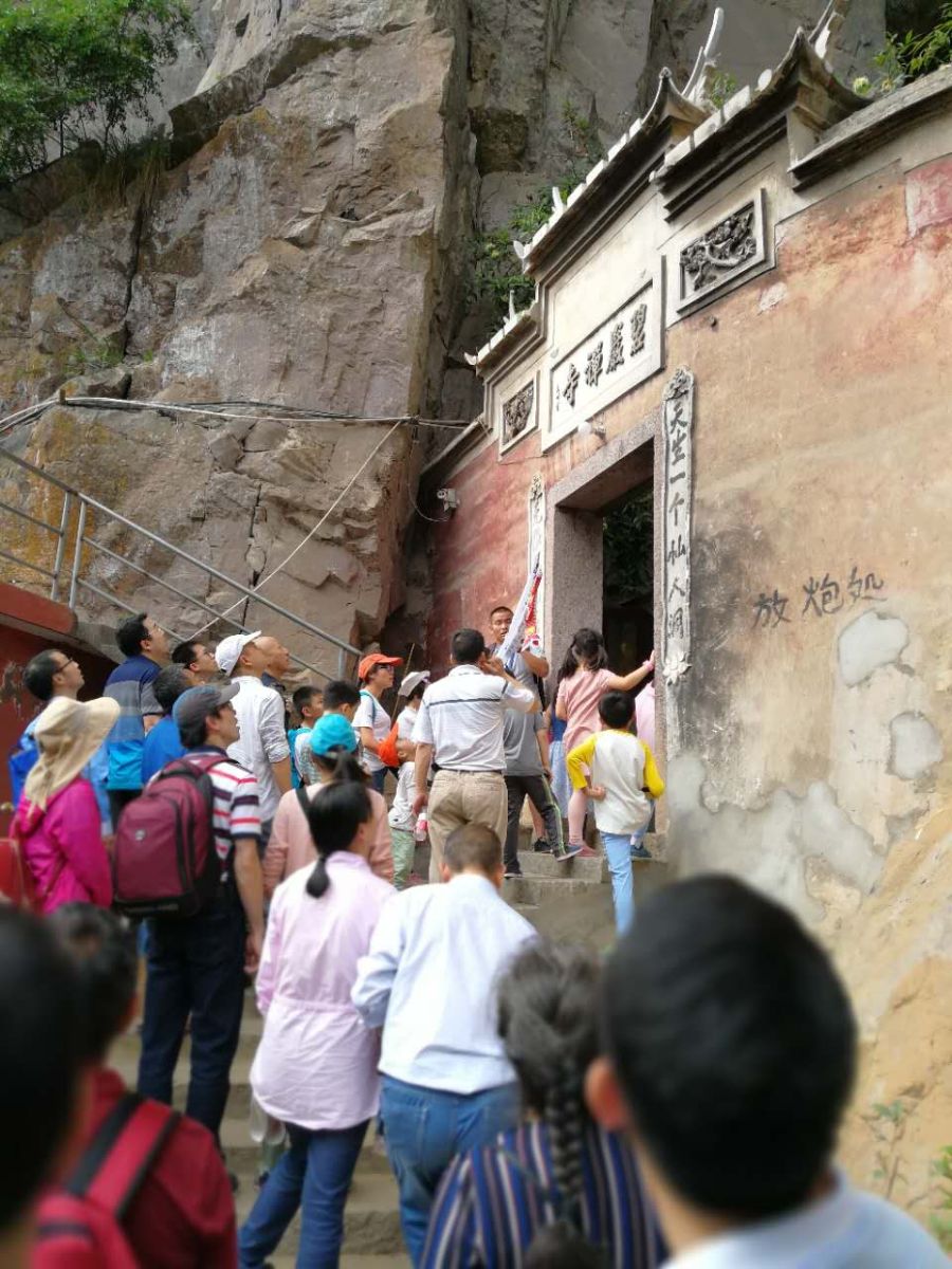下午化院教师一行前往罗源碧岩寺。只见悬崖峭壁之下,一石窟如鬼斧天成,这就是碧岩寺大雄宝殿所在。