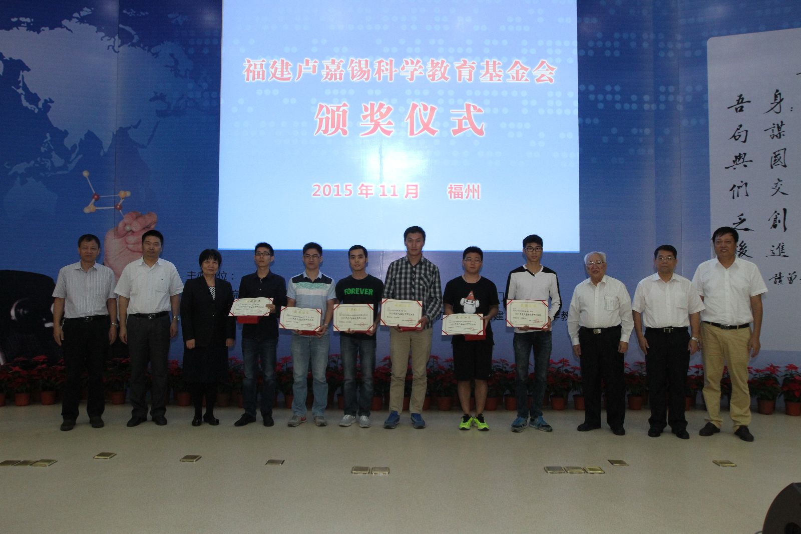 会上还颁发了2015年度的卢嘉锡科学教育基金,奖励在科研工作上有卓越贡献的教师和科研人员,以及积极进取的研究生。我院的吴棱教授获得卢嘉锡优秀导师奖,我院的张贵刚博士、刘思奇博士获得卢嘉锡优秀研究生奖。