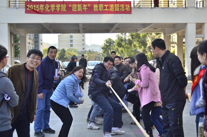 全体教职员工还在嘉锡楼广场参加迎新年趣味运动会。机关支部与功能材料支部拉开了拔河大赛的序幕,活动现场一片热火朝天,加油声呐喊声响彻广场上空,最终制药与有机党支部获得拔河大赛的冠军。接下来的幸福接力更是将运动会推向高潮,大家在竞技中增加了欢乐,在欢乐中增进了友谊。