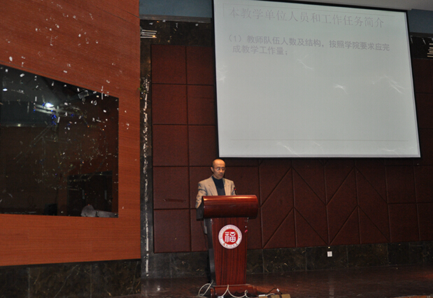 接着各教学单位负责人分别从队伍建设、教学任务完成情况、单位管理运行情况、2015年规划与指标等几个方面进行了详细汇报,学院教学指导委员会根据各系2014年工作进展进行考评打分。