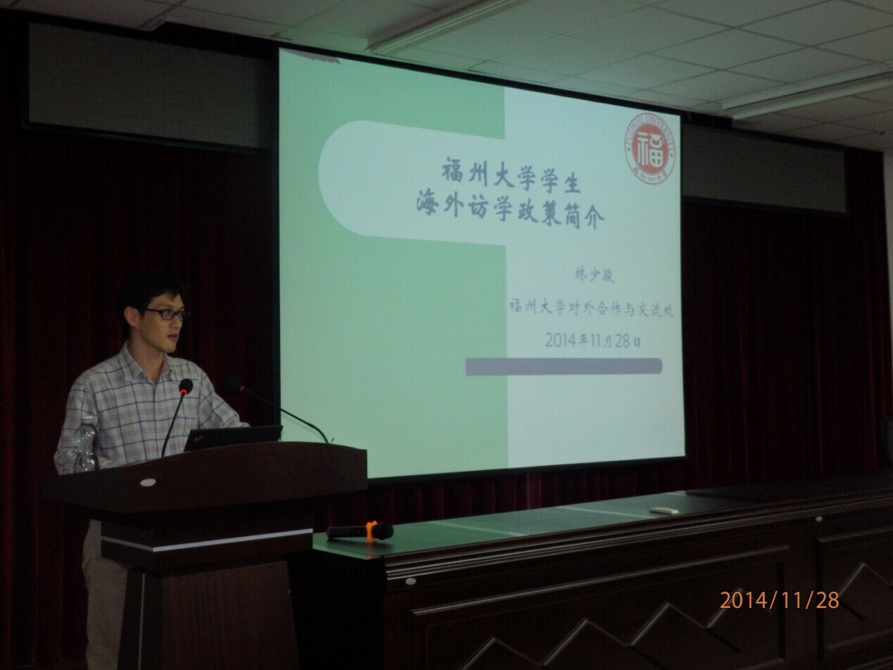 首先,校对外合作与交流处林少骏副处长就我校优秀学生海外访学政策进行了详细的解读。他指出人才培养国际化是高水平大学建设的重要任务,对外合作与交流处正积极为有意出国出境进修留学的学子搭建平台,构建渠道,并分析了校际合作项目“点对面”的优势,介绍了适合我院学生的留学项目(如短期科研合作项目),鼓励同学们珍惜学习时光,尽早做好规划和准备,充分利用学校留学基金大幅增加的有利时机出国深造。从我校海外访学的发展历程,到资助项目分类和新政策,再到具体的申请流程及注意事项,林少骏副处长的报告内容翔实,条理清晰,语言幽默,深入浅出,让同学们对学校的出国留学政策和申请流程有了比较深入的了解。