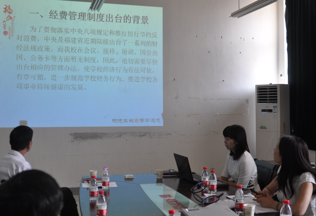 随后,何小红副处长为我院师生做了一场关于“我校经费管理制度解读”的专题报告。她指出,根据中央及福建省近期出台的一系列财经法规政策,我校对经费管理制度进行了重新修订,她介绍了各项经费管理制度制定的政策依据。并对新旧经费管理制度的对比进行了重点讲解。她同时还听取了学院师生对计财处具体工作的一些意见和建议。