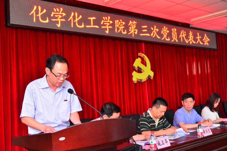 6月19日下午,化学化工学院第三次党员大会在嘉锡楼413隆重举行。94名全院教职工党员代表、退休教师党员代表和学生党员代表参加了会议。校党委委员、组织部徐晓丹部长,组织部程贞玫主任科员应邀出席大会。会议由学院党委副书记施卫华主持。
