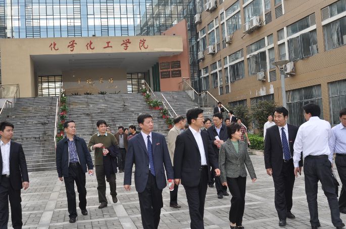 2012年4月19日下午,教育部党组副书记、副部长杜玉波在省委常委、副省长陈桦,省教育厅厅长鞠维强,校党委陈永正书记和付贤智校长陪同下莅临我院国家环境光催化工程技术研究中心和食品安全分析与检测技术教育部重点实验室视察。付贤智校长和陈国南教授分别向杜副部长一行详细介绍了光催化和食品安全分析与检测实验室的建设情况和科研成果,杜副部长肯定了所取得的成绩并接见了部分青年骨干教师,他强调高校要有三大:大师、大楼、大爱。要以师德为先、教学为本、科研为基,教师的品德是最重要的,最后他向教师提两点希望:一是做好学术工作,二是不能耽误学生。