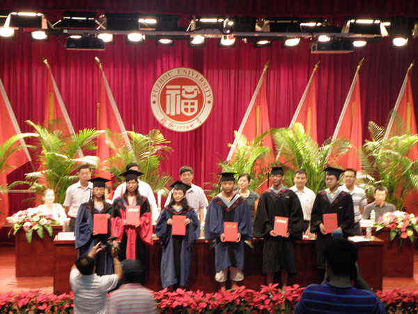 仪式在欢快音乐的伴奏下,在全体师生嘹亮的国歌声中拉开序幕,接着学院陈建中副院长宣读了我院荣获2011届校优秀毕业生的同学名单、2011届获得博士、硕士、学士学位的同学名单,并对这些同学表示衷心的祝愿。2011届毕业生中我院共有12位研究生和14位本科生被授予“优秀毕业生”荣誉称号,19位博士生获得博士学位,164位研究生获得硕士学位,296位本科生获得学士学位。