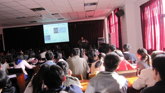 李景虹教授的报告围绕石墨烯材料展开,详细介绍了石墨烯材料的发现过程及研究进展,特性及制备,重点介绍了他们课题组关于石墨烯的应用研究工作,报告引起热烈反响,报告后李景虹教授和与会师生展开热烈的讨论。