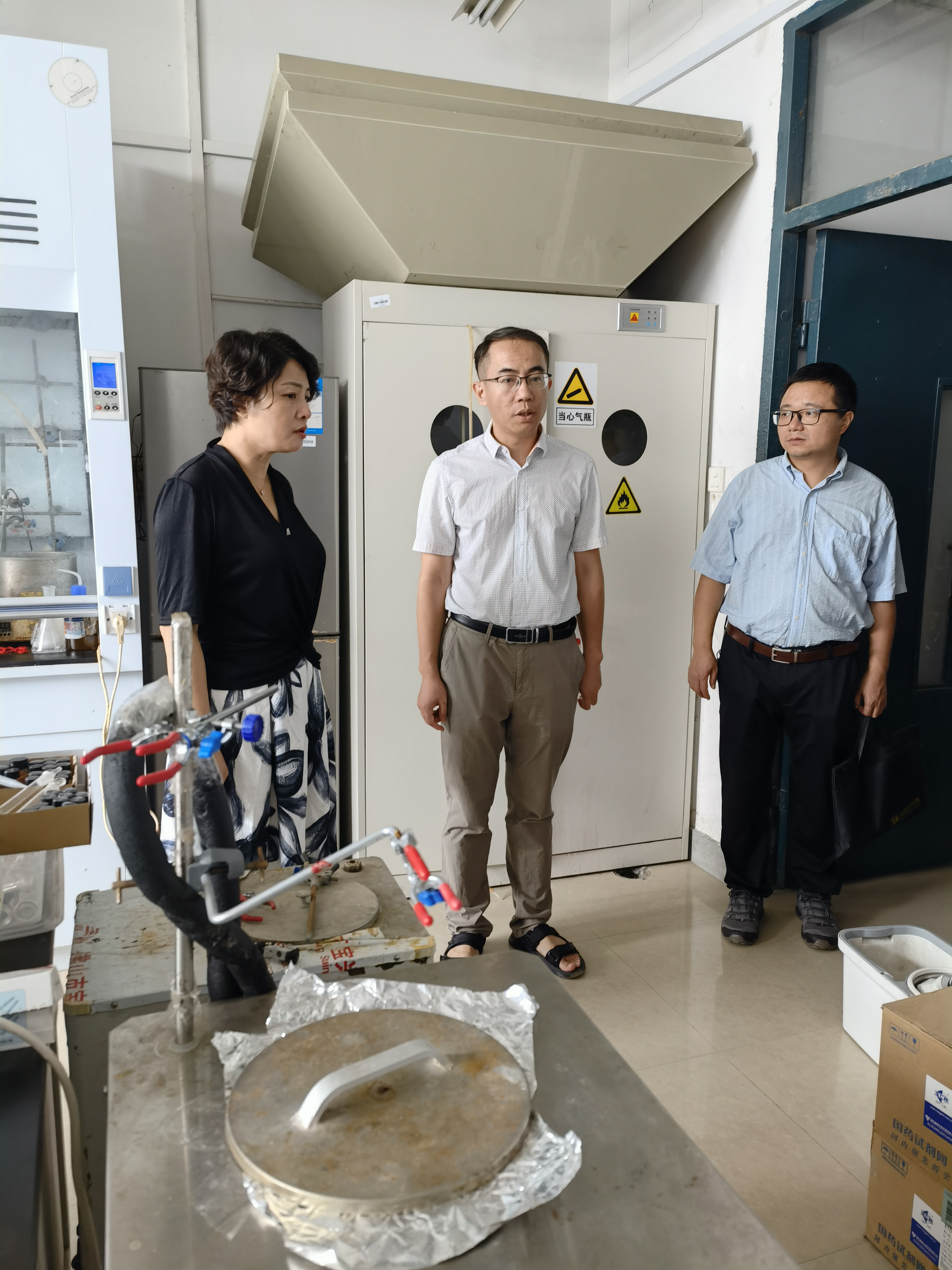 新学期新气象!为了切实加强我院实验室安全管理工作,深入排查实验室安全隐患,确保实验室安全平稳运行,8月30日,学院党委书记张泓,院长郑寿添,院长助理林伟带队检查了学院实验室安全工作。