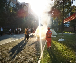 研究生新生消防安全教育活动,本次活动分为消防安全知识培训讲座和现场消防灭火演练两个部分,学院师生与保卫部、校医院医生共计500余人分两个班次参加本次活动。