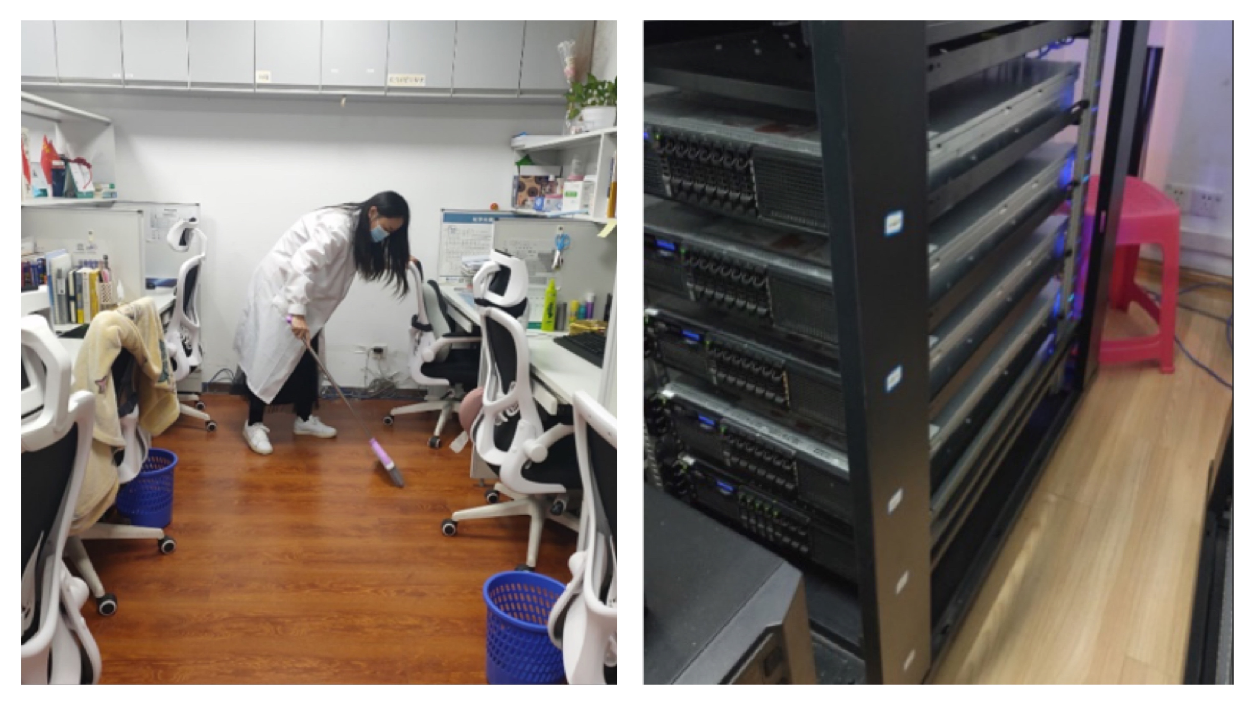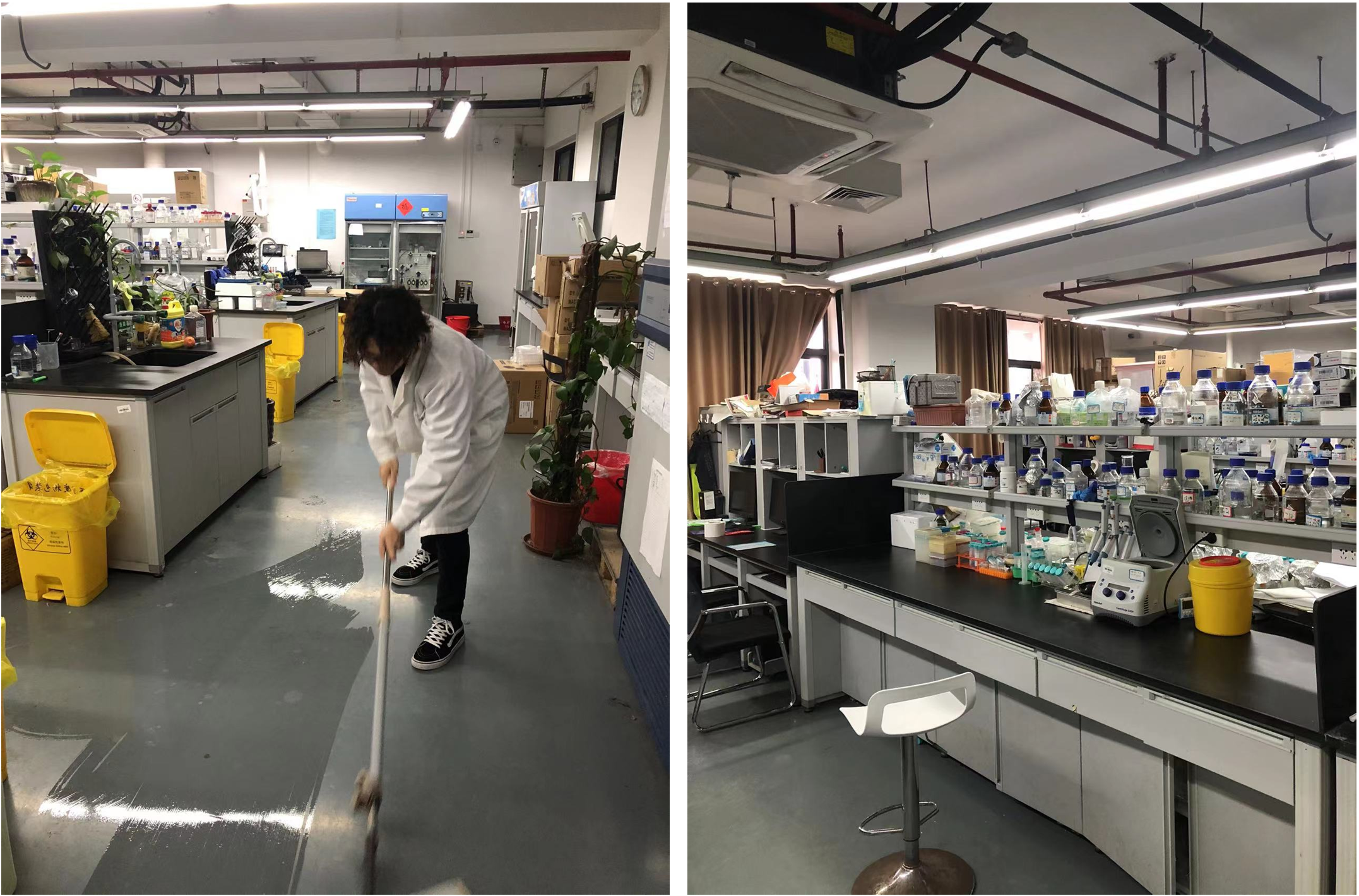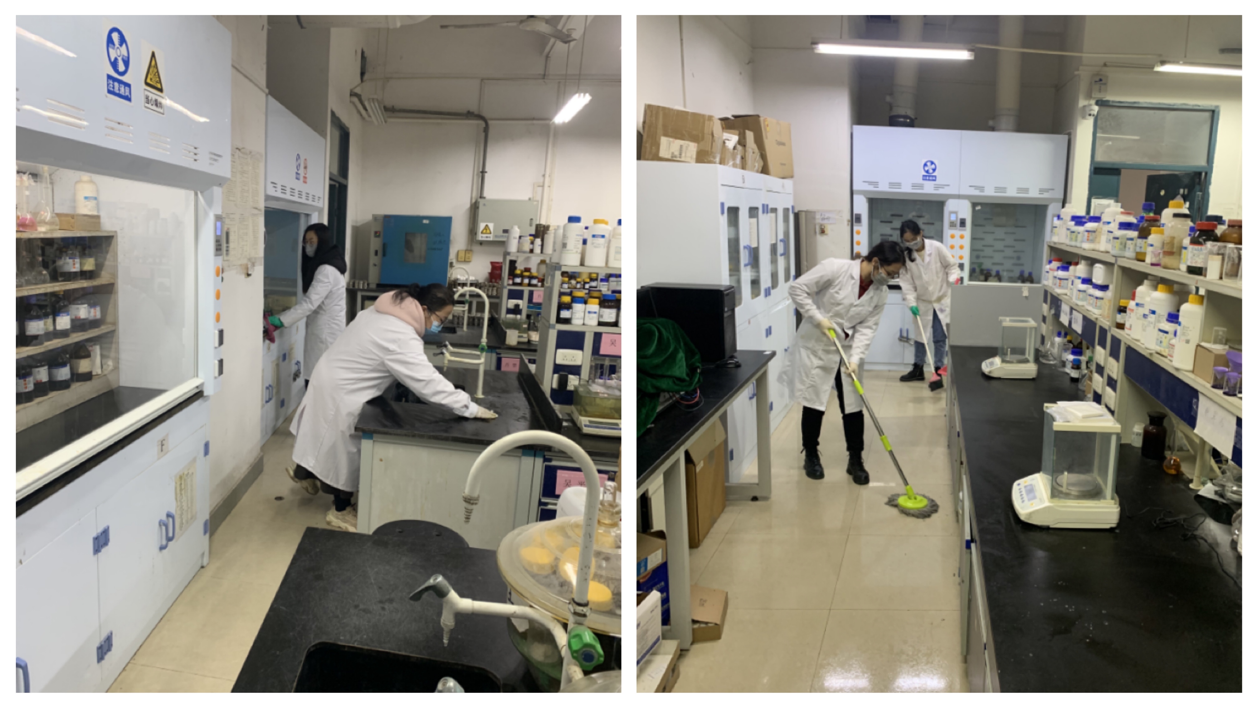 在同学们的认真打扫下,实验室的环境变得干净整洁,实验仪器摆放井然有序,桌面上的试剂器材更加易于取放,同学们的工位也更加整齐舒适,有效改善了科研环境。