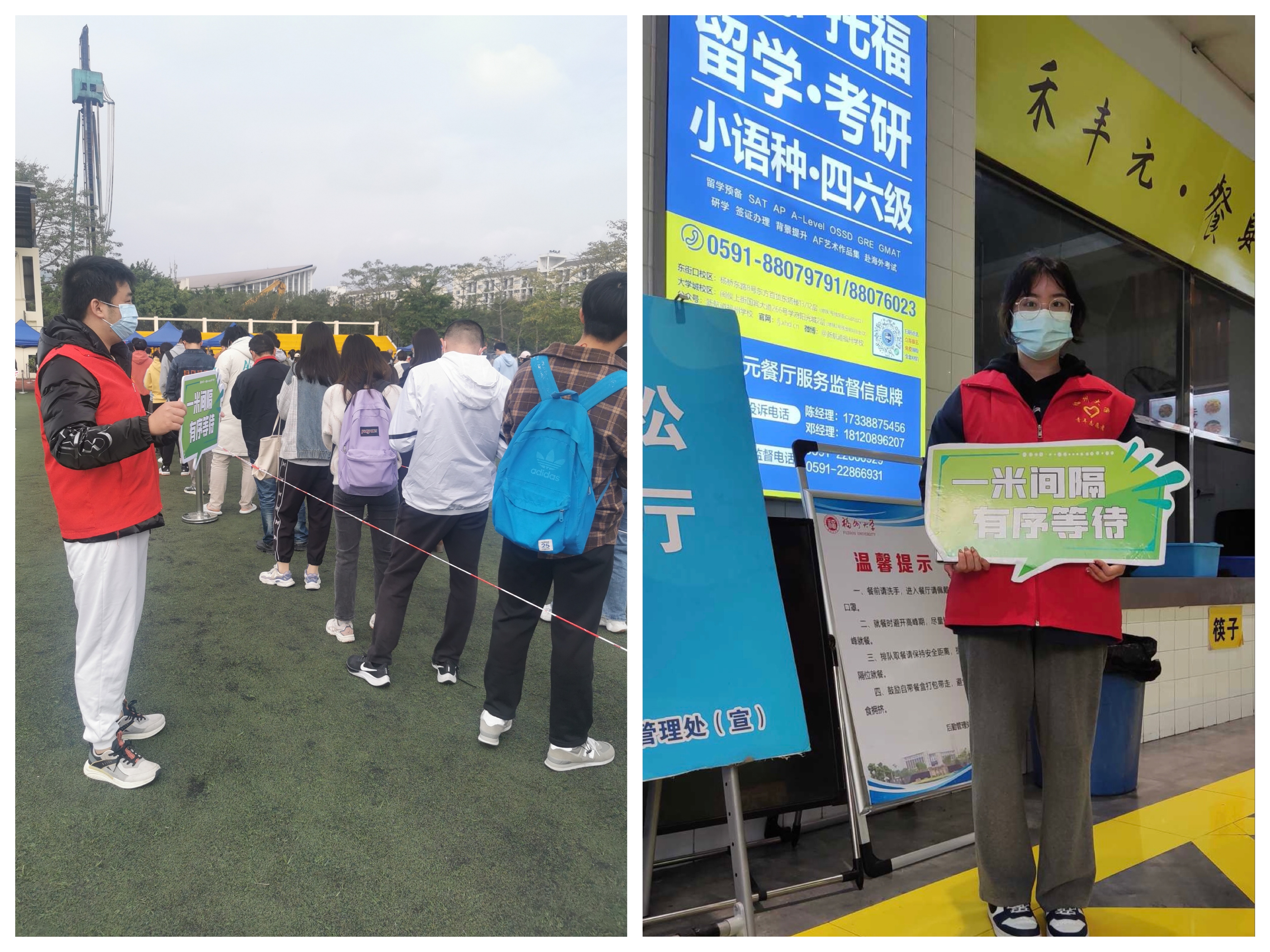 同时我院安排志愿者轮岗值班,进行学校公共区域的科学防疫劝导行动,避免核酸检测现场人员密集、制止食堂师生堂食密集、制止谣言与恐慌等,积极宣传提倡错峰而行、错峰就餐,以最精准、最实在的防疫举措养成师生良好的生活行为习惯。