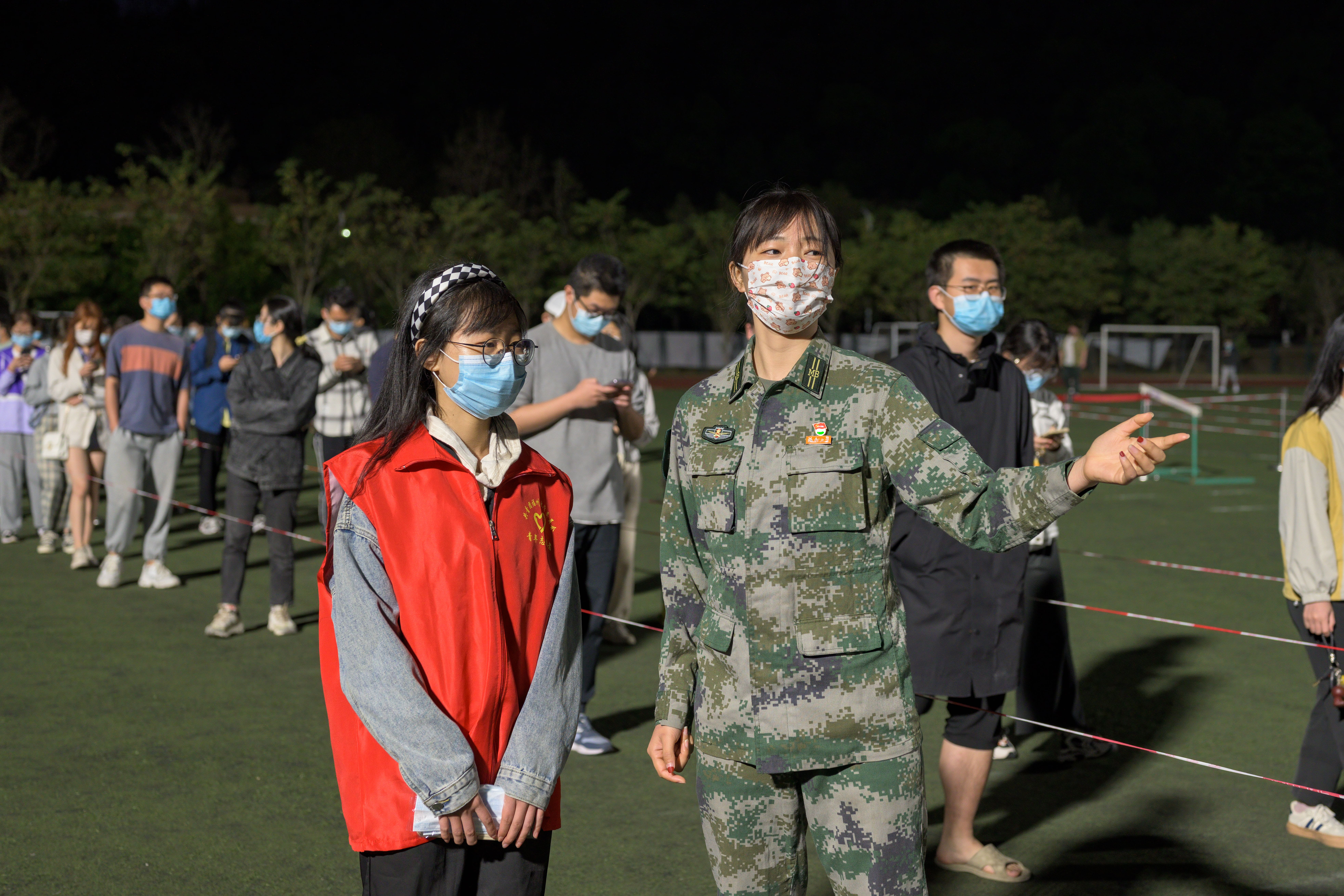 学院尽责做到全员每周一检,政工干部严守核酸检测第一线,严格安排落实全体学生核酸检测,不漏一人,做到每场必到,做好疫情防控“守门人”。我院退伍女特种兵刘宇娟同学主动请缨、走上一线组织学校退役士兵突击队,另一名退伍学生也参与其中,他们在抗击疫情的“战场”上,展现军人本色。