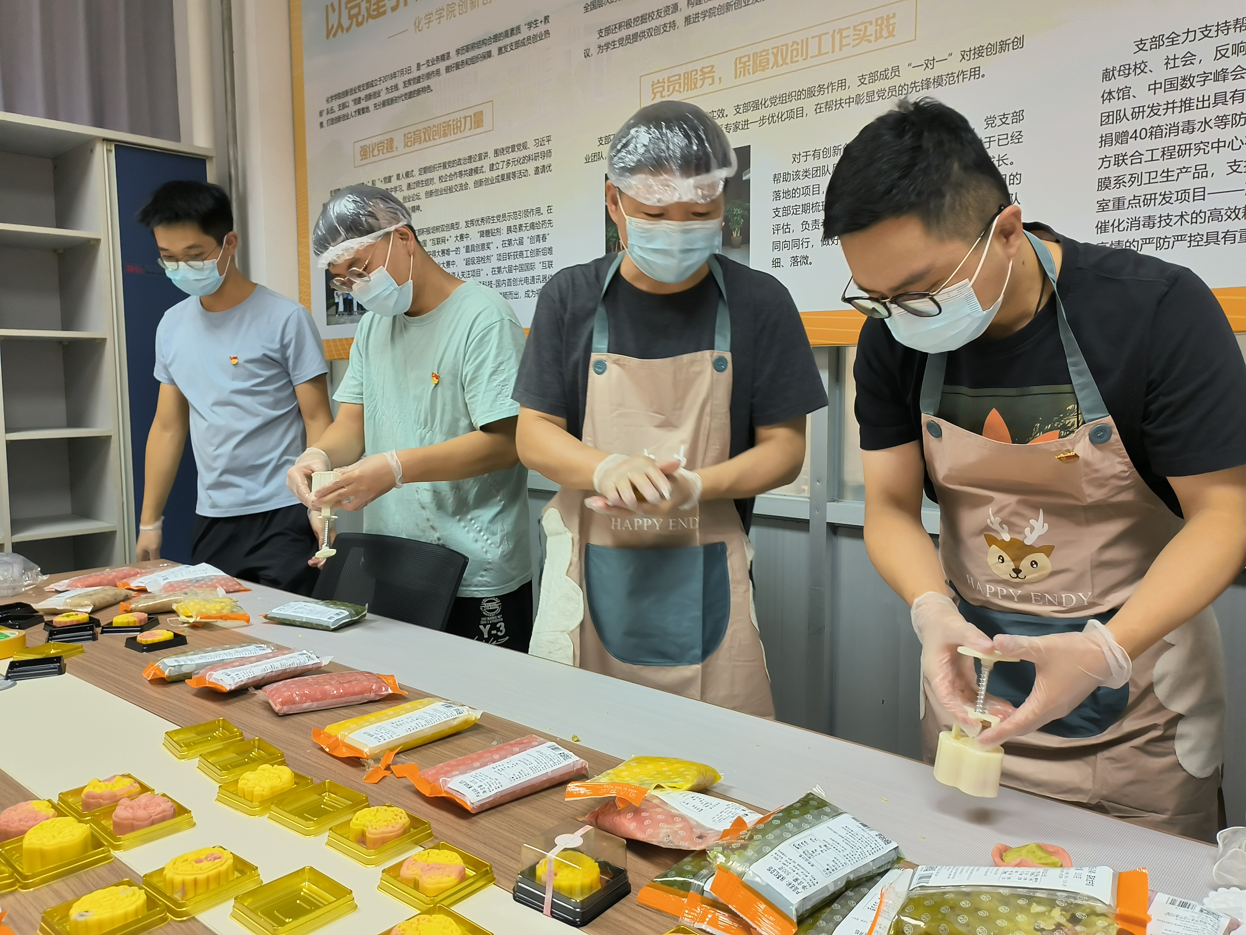 创新创业党支部全体师生党员齐聚活动中心制作手工冰皮月饼。大家在揉面、包馅、压模、脱模、成型中感受中华传统节日的博大精深。在欢声笑语中,党员同志们回顾入党历程,分享真挚热烈的初心故事。学院党委张泓书记、联系创新创业党支部的党委委员郑寿添院长也来到现场,认真观看了月饼制作过程,并代表学院向老师同学们致以节日的问候,拉近了学校、老师与同学们的距离,增强了党组织的凝聚力。