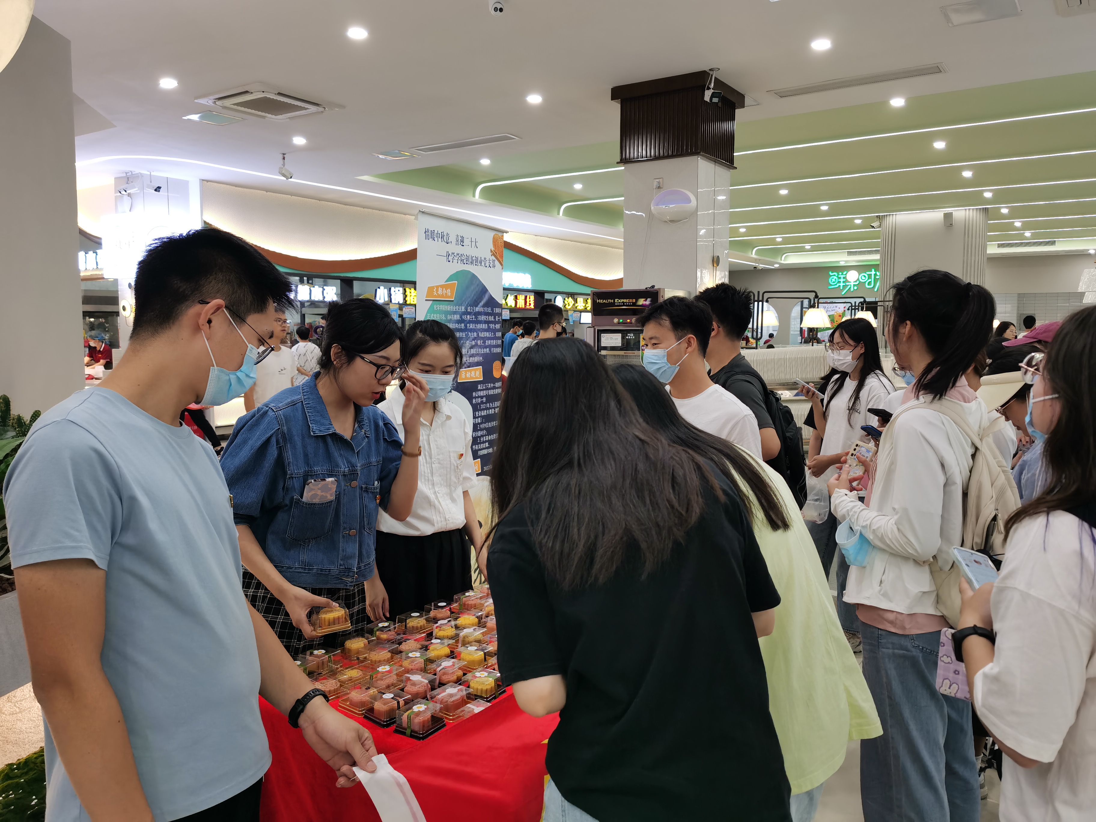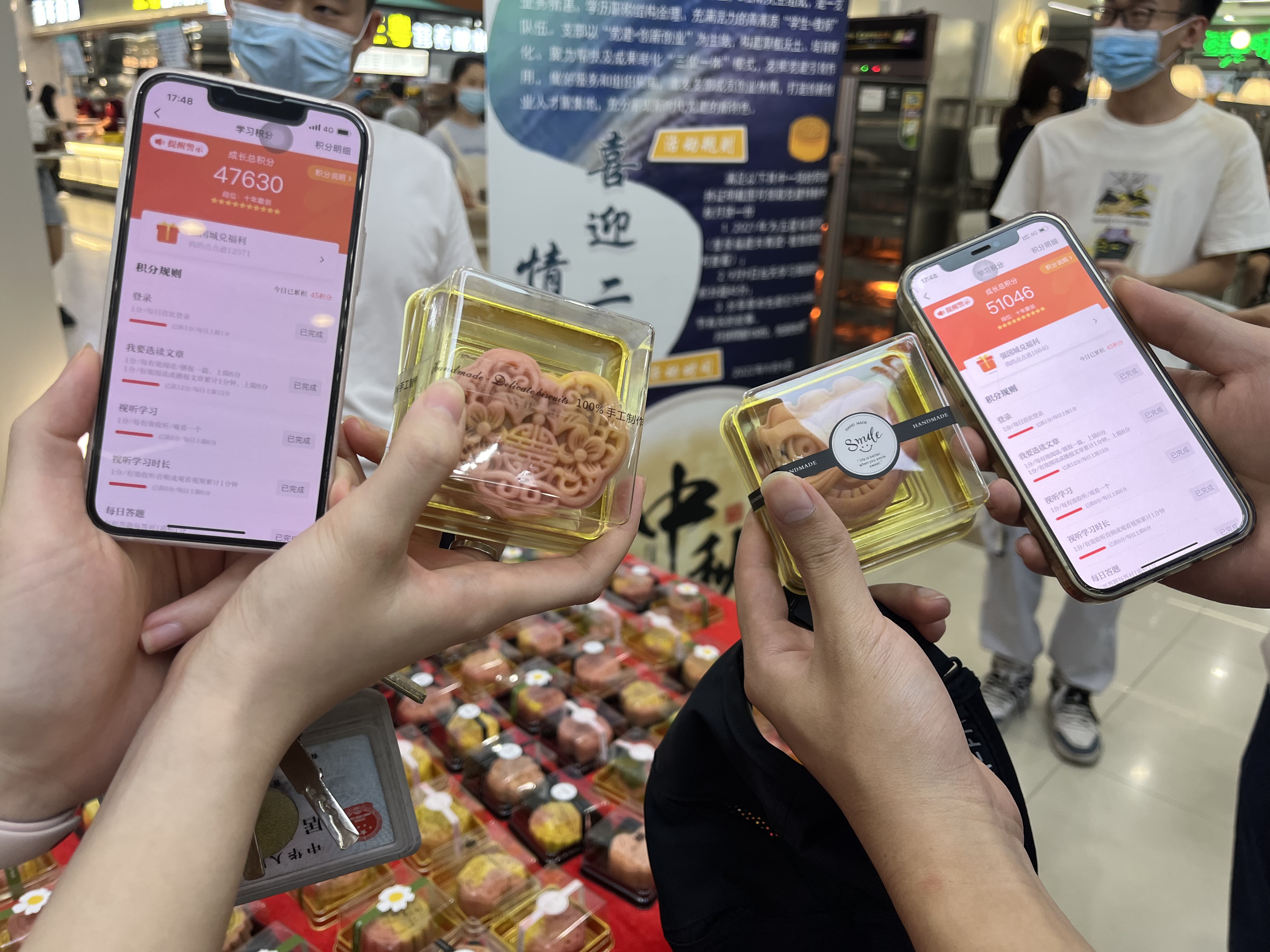 创新创业党支部积极贯彻落实习近平总书记关于加强学习,建设学习大国的重要指示精神,引领同学指尖上学党史,开展“你学习我奖励,争做学习达人”活动。活动现场,同学们只要拿出手机查看是否满足以下任意一个条件均可领取手工月饼。1、2021年度获得“五星级团员”;2、学习强国当日积分达到45分以上;3、活动现场分享革命先辈们与中秋节有关的故事。