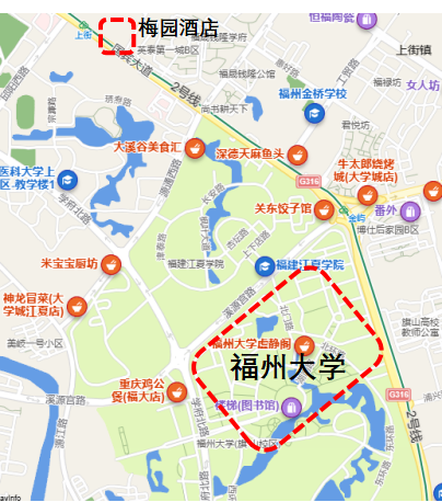 3.梅园酒店步行至上街地铁站,乘坐地铁2号线,到金屿地铁站,D口出,步行1.3公里即可到达化学化工实验教学中心。