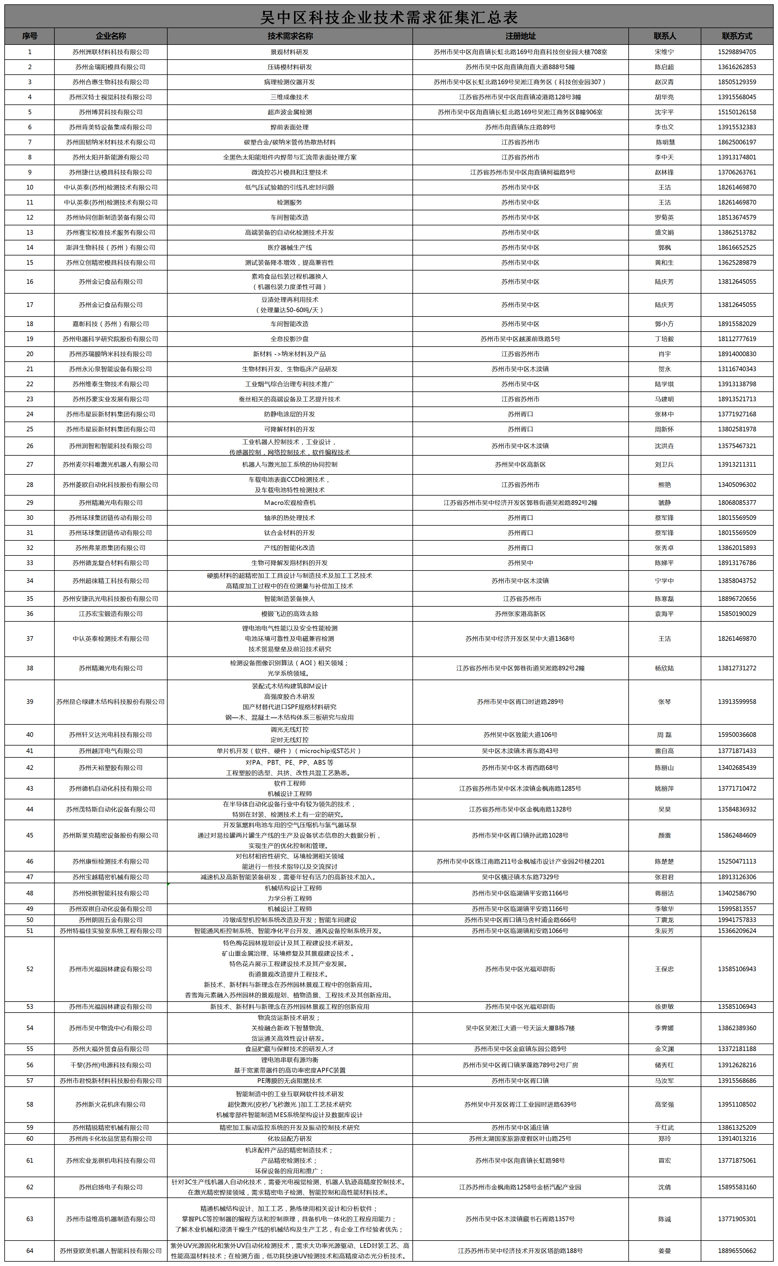 附:吴中区科技企业技术需求征集汇总表