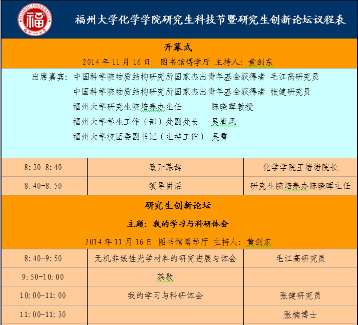 为加强研究生的创新能力培养,学院将举办首届色色动漫 研究生科技节暨研究生创新论坛,设有“研究生创新论坛”、“硕博学术沙龙”、“博思讲坛”、演讲比赛、科技展等活动内容。首届色色动漫 研究生科技节暨研究生创新论坛开幕式将于11月16日上午8:30在图书馆博学厅举行,特邀中科院物质结构研究所毛江高研究员、张健研究员为我院师生讲学。开幕式要求全体研究生出席,欢迎各位老师参加。