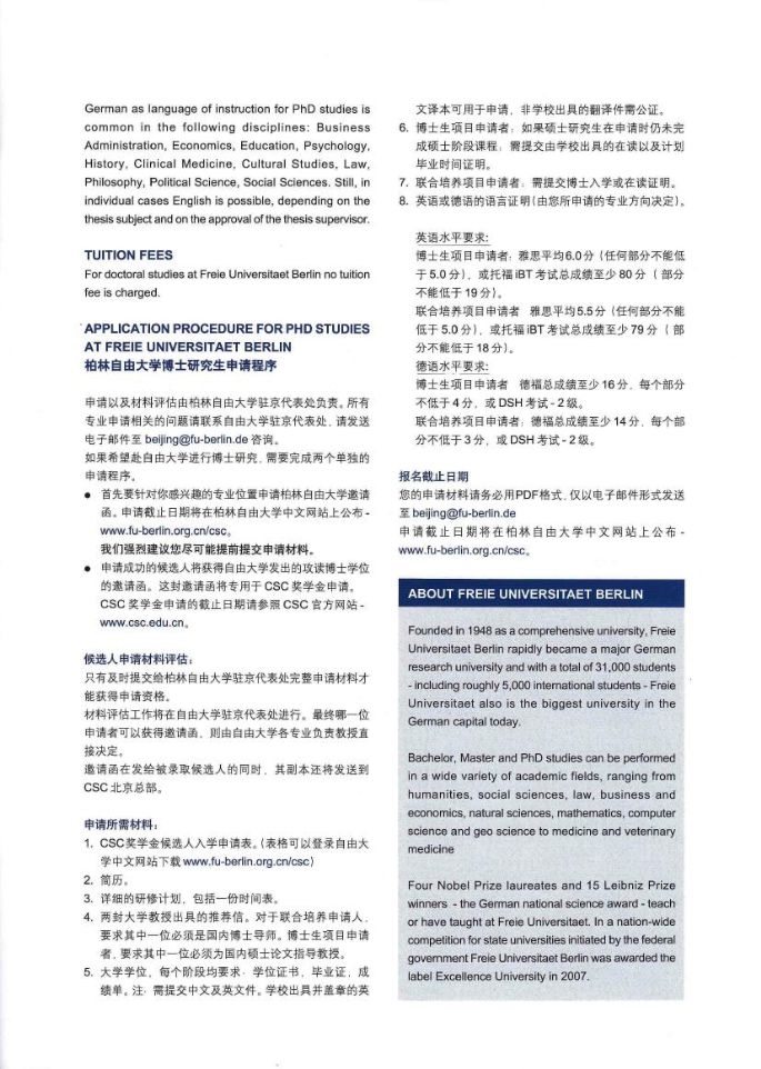 德意志学术交流中心与柏林自由大学--中国国家留学基金委日前发布留学项目,欢迎同学去申请,具体可到中德学院咨询。