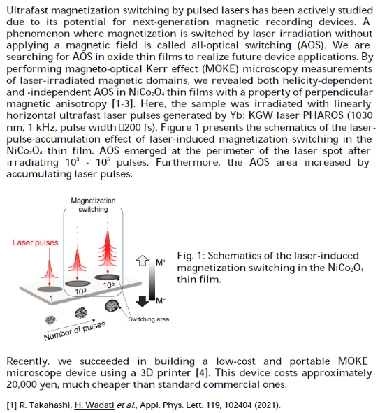 Hiroki Wadachi教授,2007年博士毕业于日本东京大学。2005年4月-2007年3月,日本科学促进会研究员;2007年4月-2009年5月,哥伦比亚大学博士后;2009年6月-2010年6月,获哥伦比亚大学全球学者奖;2010年7月-2013年12月,日本东京大学讲师;2014年1月-2019年3月,东京大学副教授。2019年4月至今受聘于日本兵库县立大学担任教授。主要从事同步加速器X射线和实验室激光研究过渡金属化合物的电子性质。目前已在国际期刊发表论文100余篇。2018获得日本文部科学省青年科学家奖。
