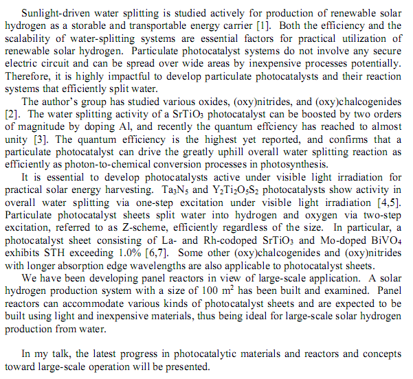 报告题目:Photocatalytic water splitting for solar hydrogenproduction