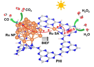 有鉴于此,本研究将Ru单原子(SAs)和Ru纳米粒子(NPs)分别通过平面内Ru-N4配位和界面Ru-N化学键修饰在聚(庚嗪酰亚胺)(PHI)上,实现了高效和持久的CO2光化学还原过程。
