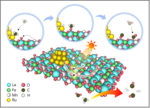 Ru/LaMnFeO的光热DRM反应路径示意图